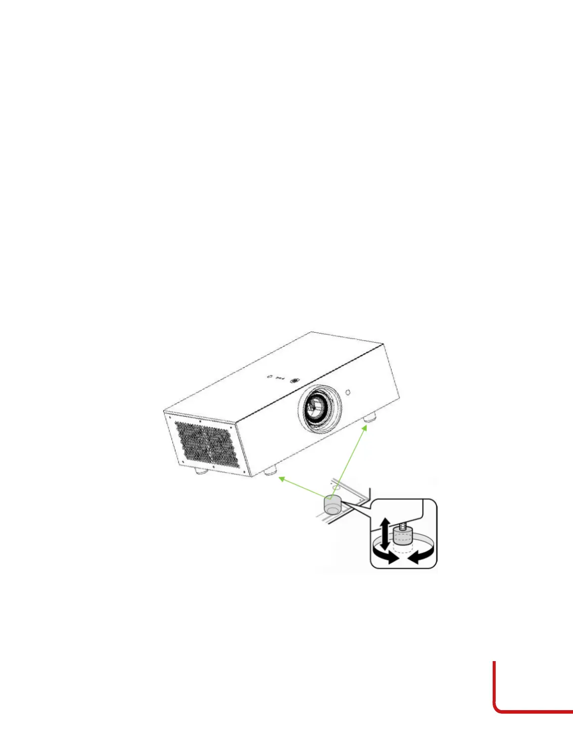 Rotate the adjustable feet counter clockwise to raise the projector or clockwise to