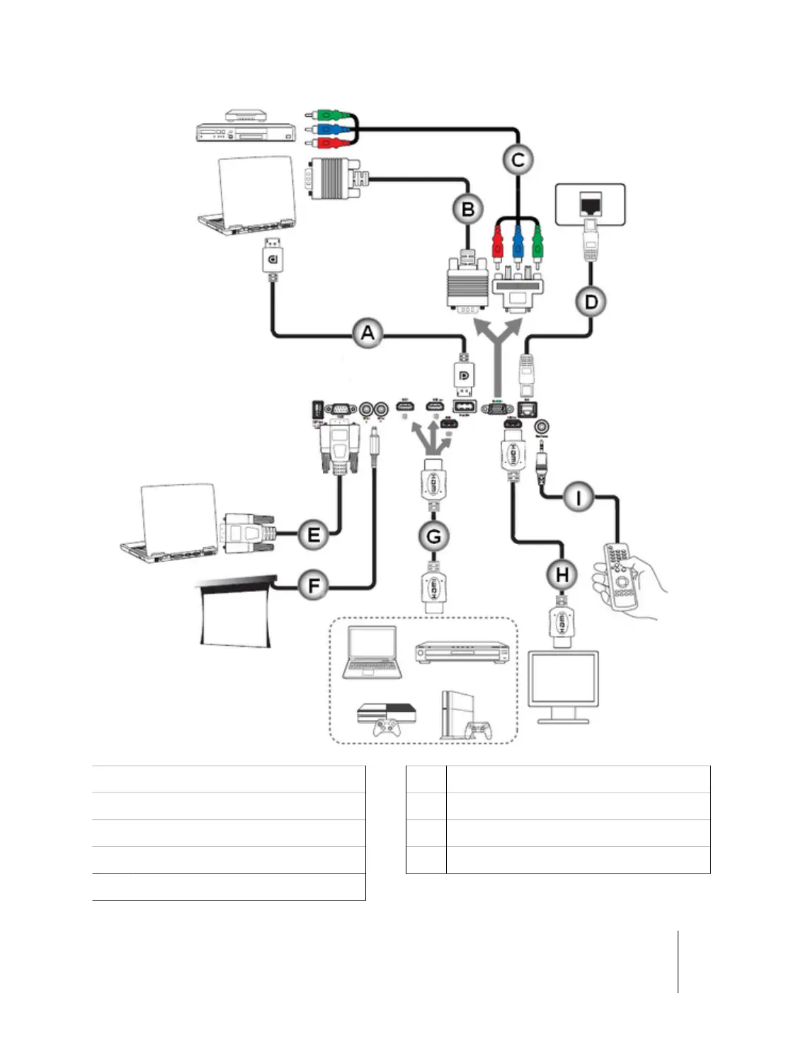 Connecting sources to the projector