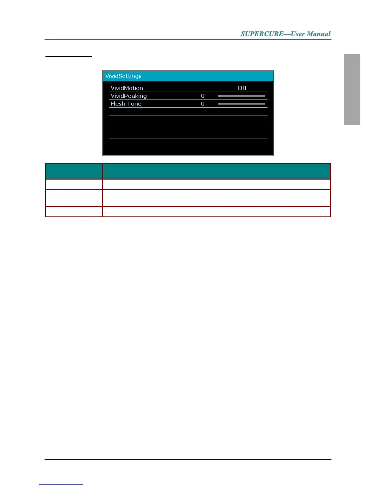 Press the ◄► buttons to adjust motion adaptive sharpness enhancement (2D