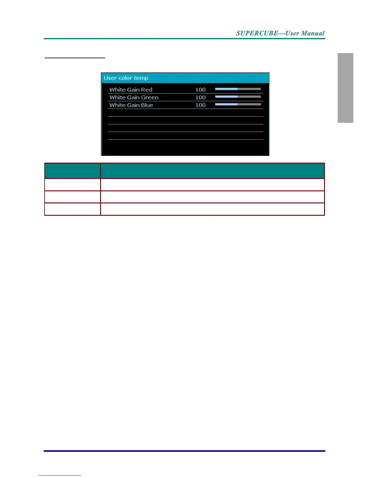 Press the ENTER button to enter the User Color Temp sub menu.