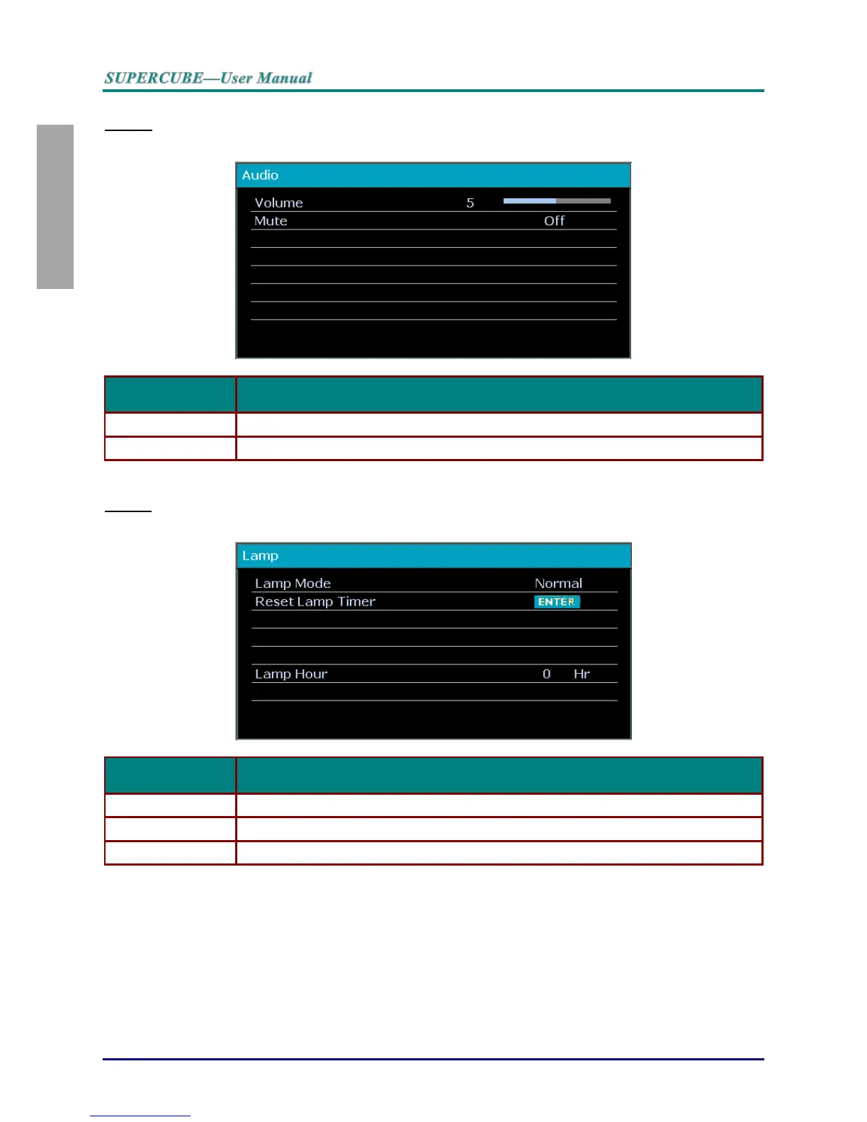 Press the ENTER button to reset the Lamp Hour after the lamp is replaced.