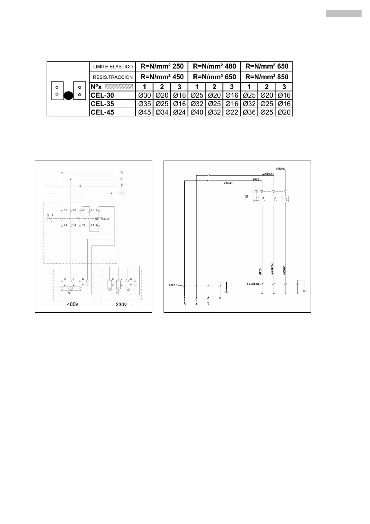 3Kw / 4 CV, trifasico a 400V, magnetetermico da 15A e differenziale da 15A/30mA.