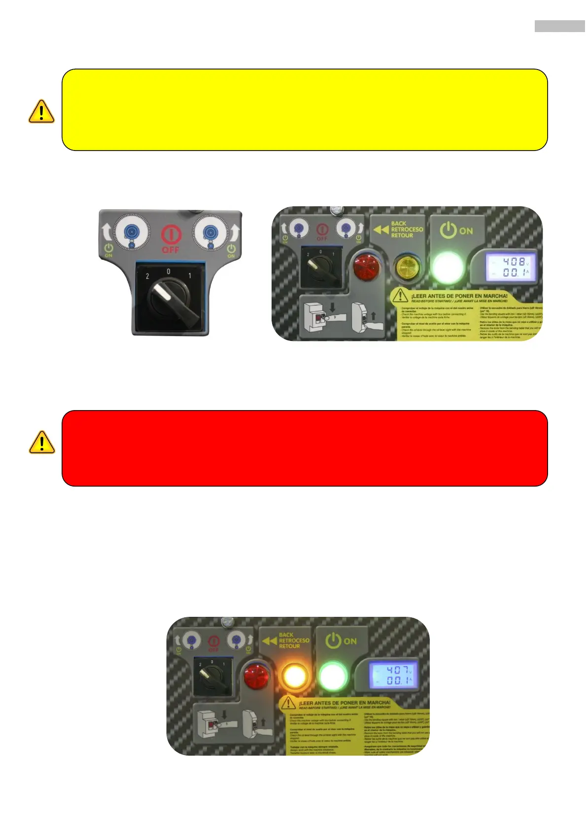2. Gire el conmutador seleccionando un sentido de giro y se iluminara el piloto verde de conexión.