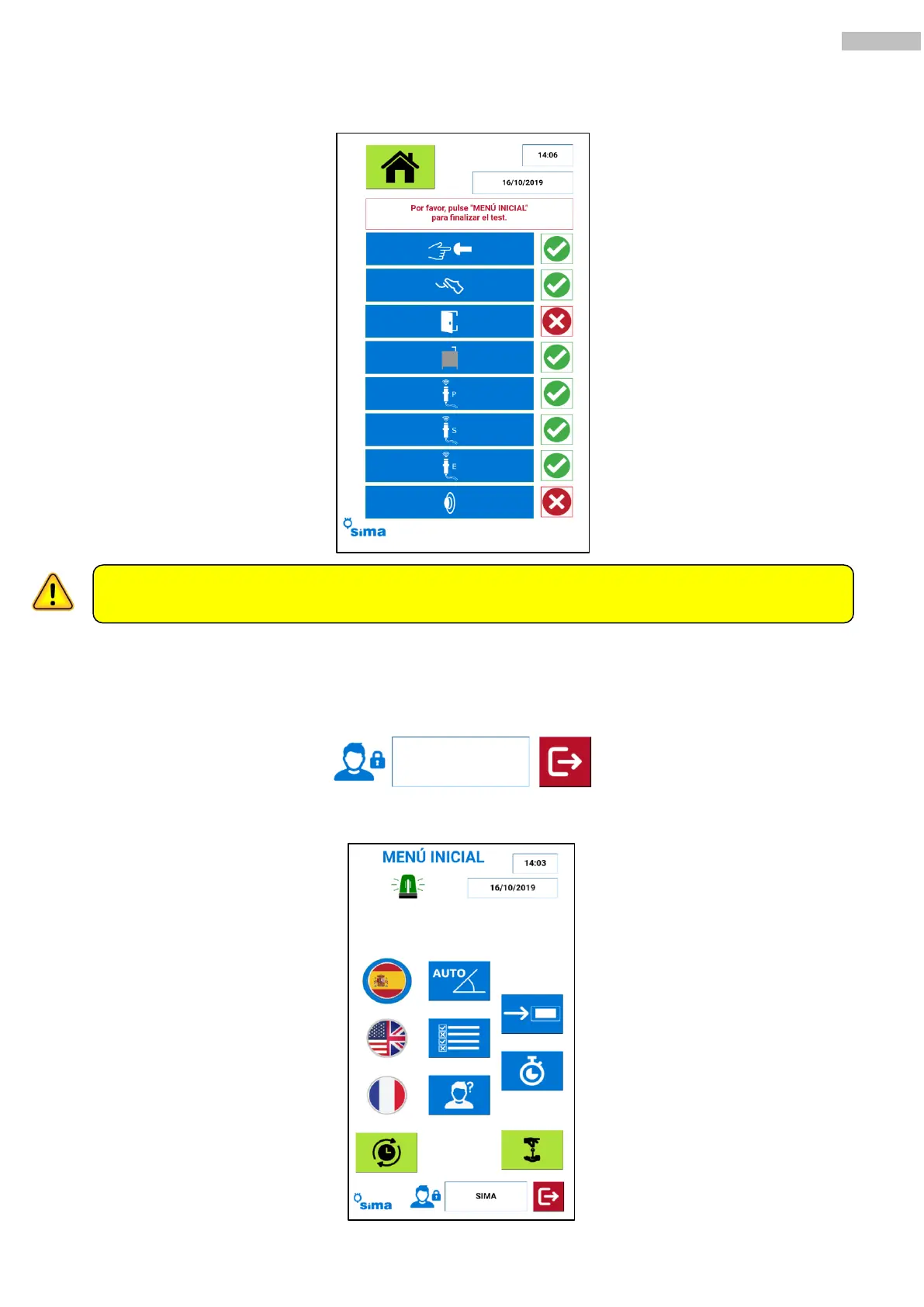 Si la visualización se encuentra en modo test, la máquina no funciona (ni en modo manual ni en modo automático).
