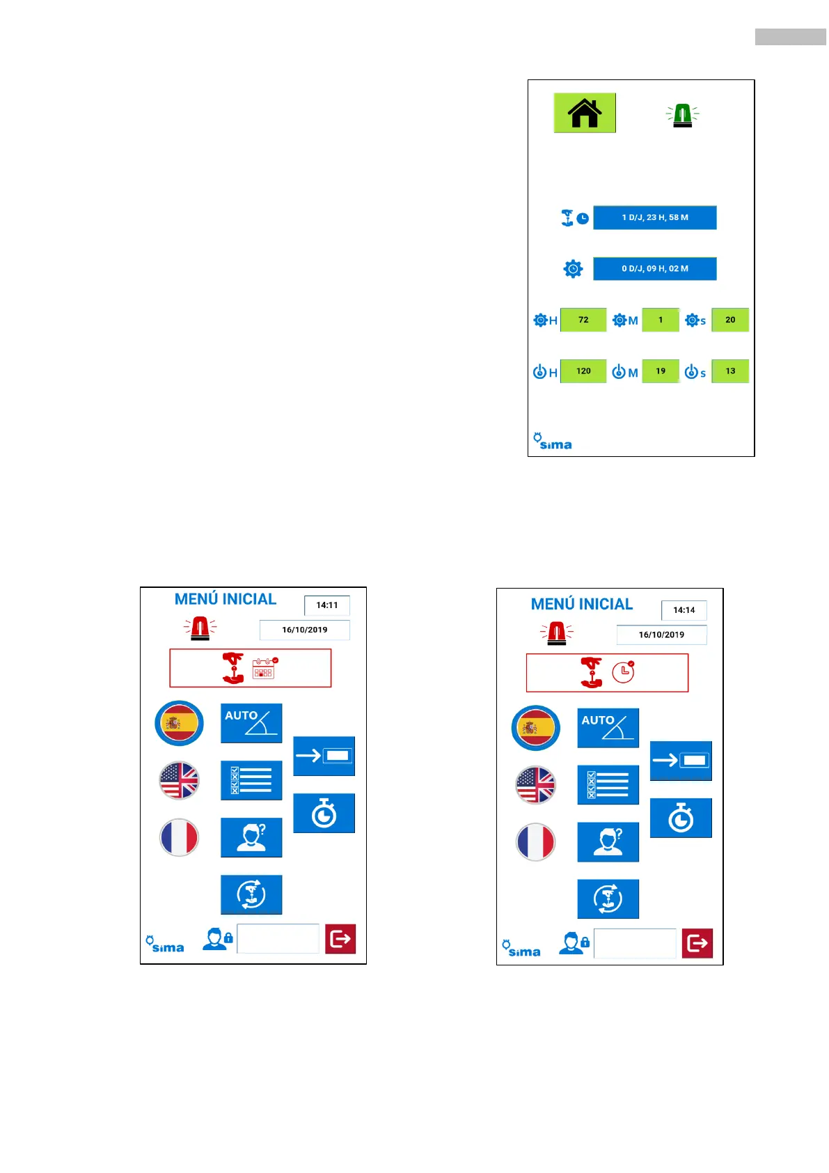 mediante temporización por tiempo de uso). Además de bloquearse, aparecen unas alarmas en la visualización según