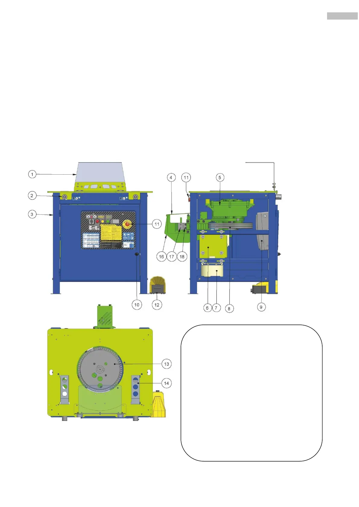 • The machine is painted in oven with a highly resistance, anti-corrosion epoxy polyester paint.