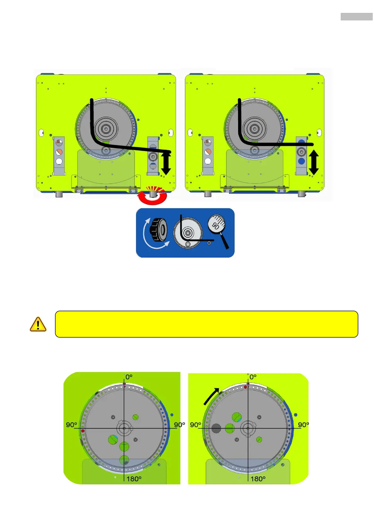3. Insert the plate pin to the left of 0º so achieve an angle of 90 º.