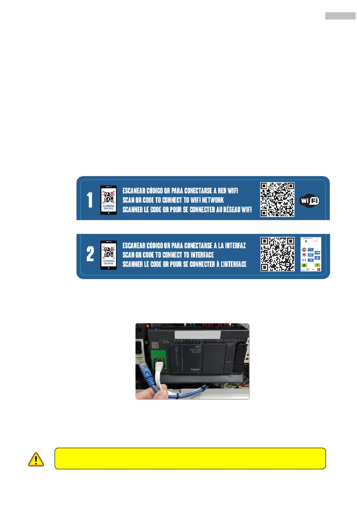 1. Before switching the machine on and with the switch on the 0 position, check that the wire RJ45 from
