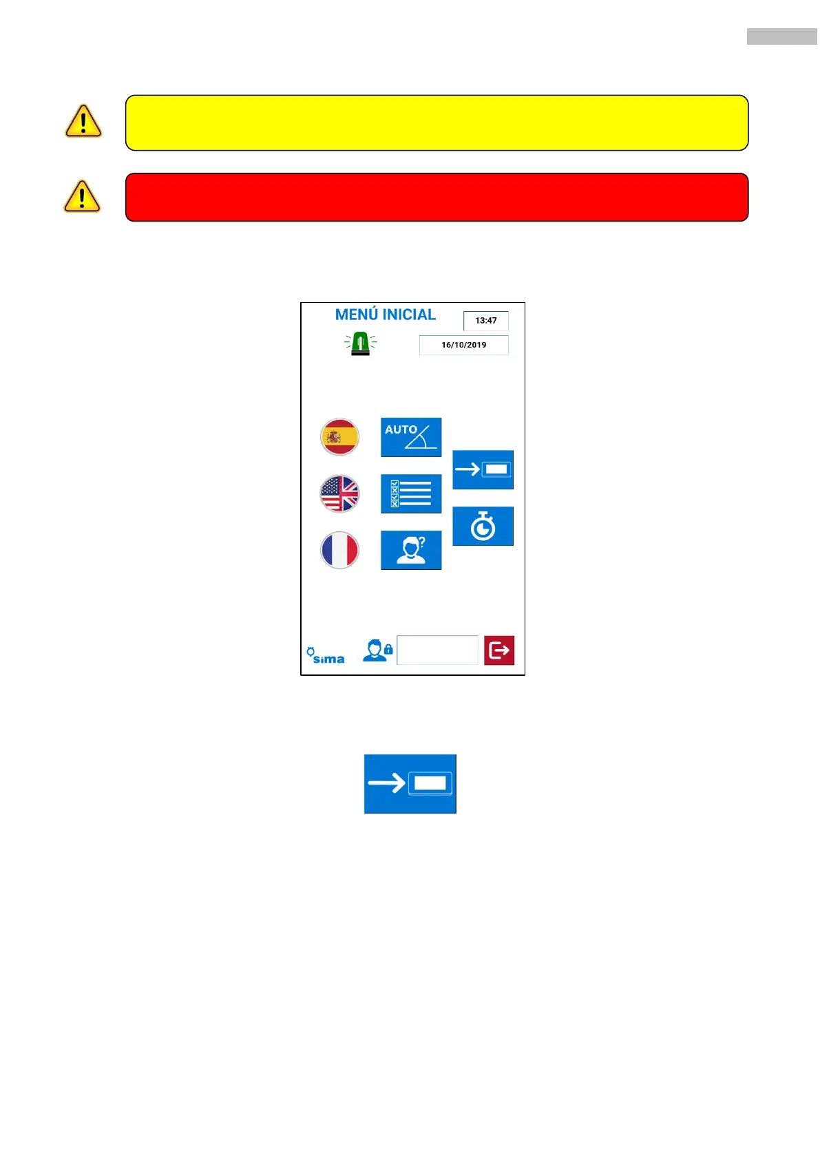 use modes (explained in the next paragraph). The button part of the screen shows the current user identification (if it