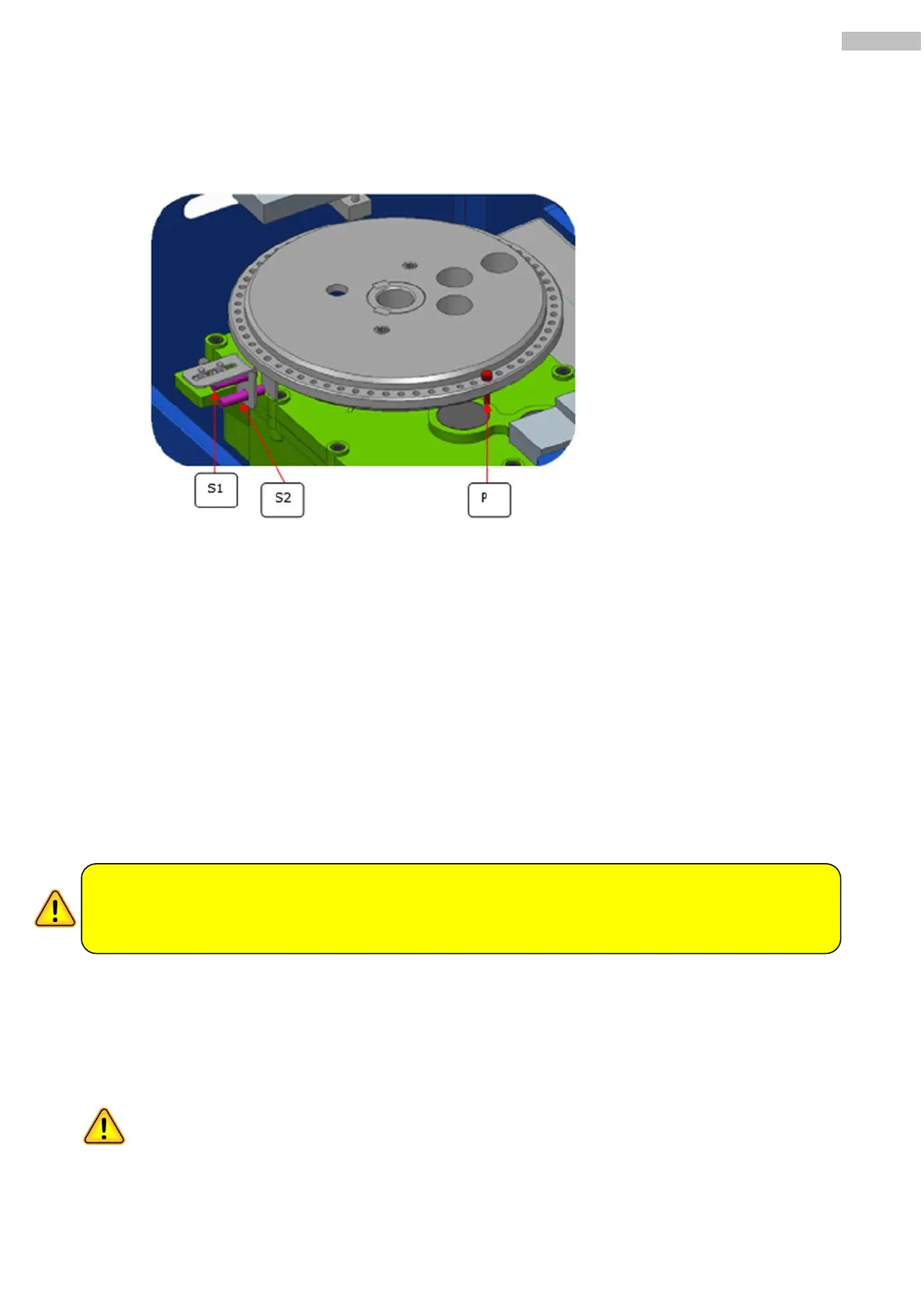 Le capteur inductif S1 a pour mission de stopper la rotation du plateau lorsque la goupille P passe devant.