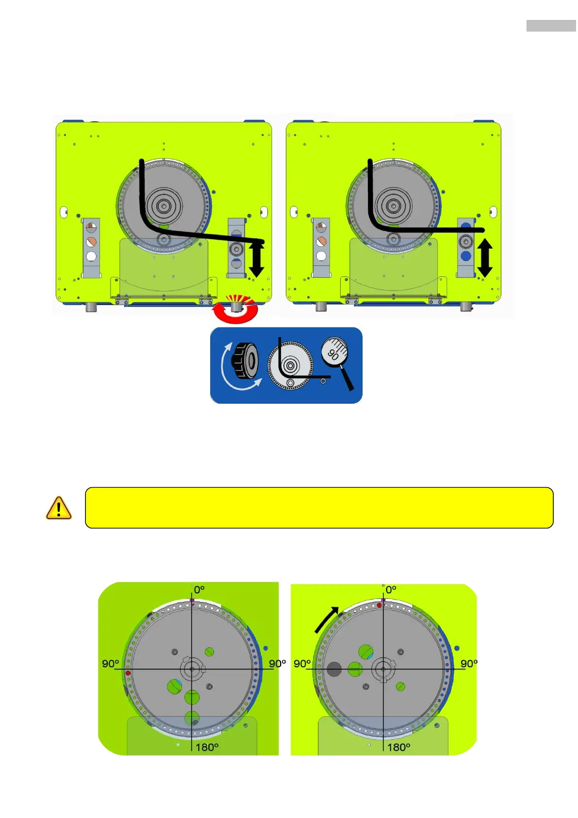 3. Placer la goupille à gauche de 0º de telle sorte que se forme un angle de 90º.