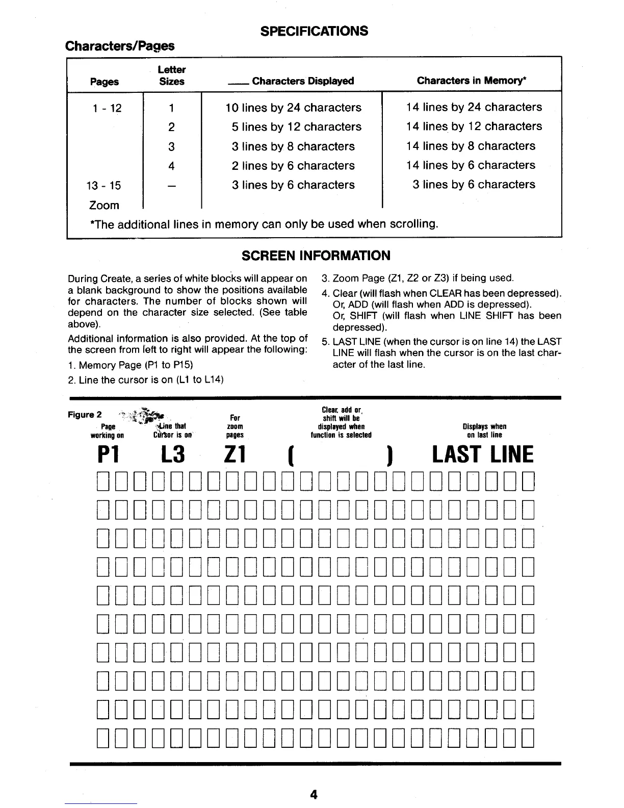 Sima SCG - Specifications; Screen Information; Characters;Pages