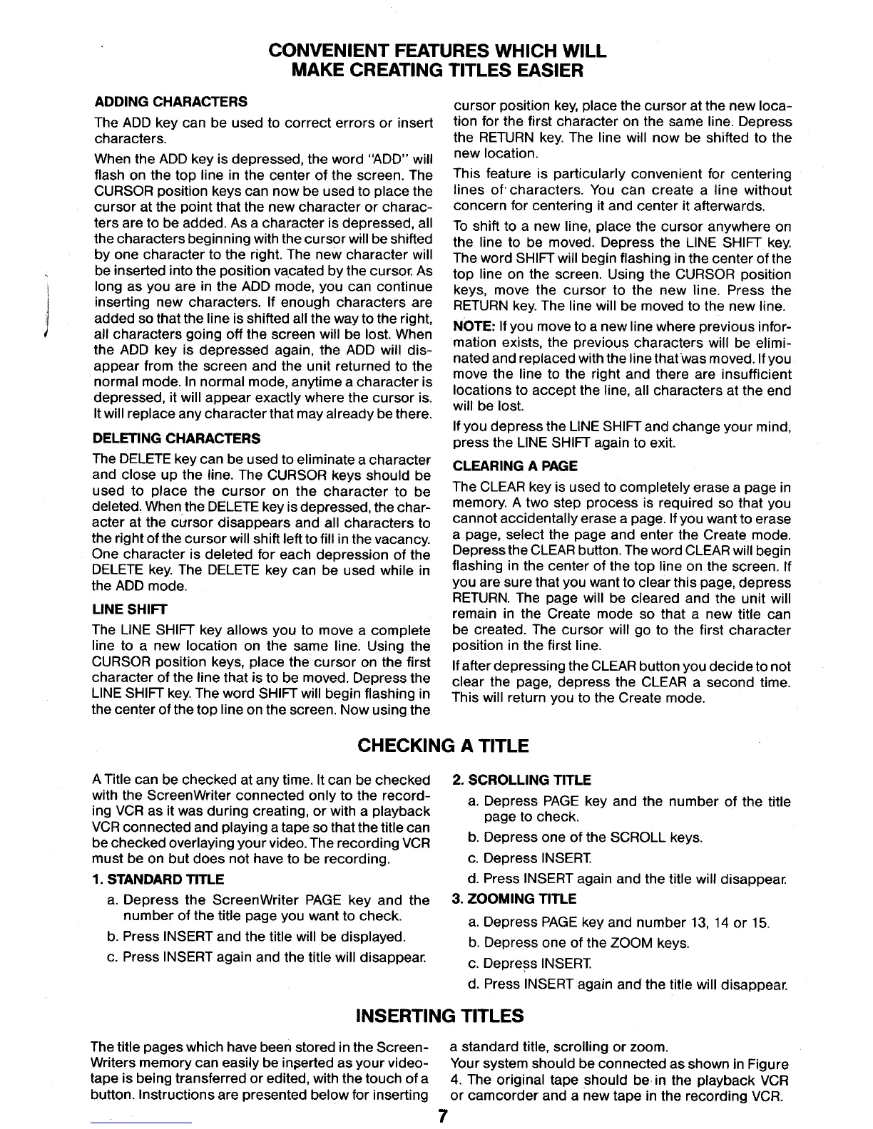 Sima SCG - Convenient Features; Adding Characters; Checking a Title; Deleting Characters