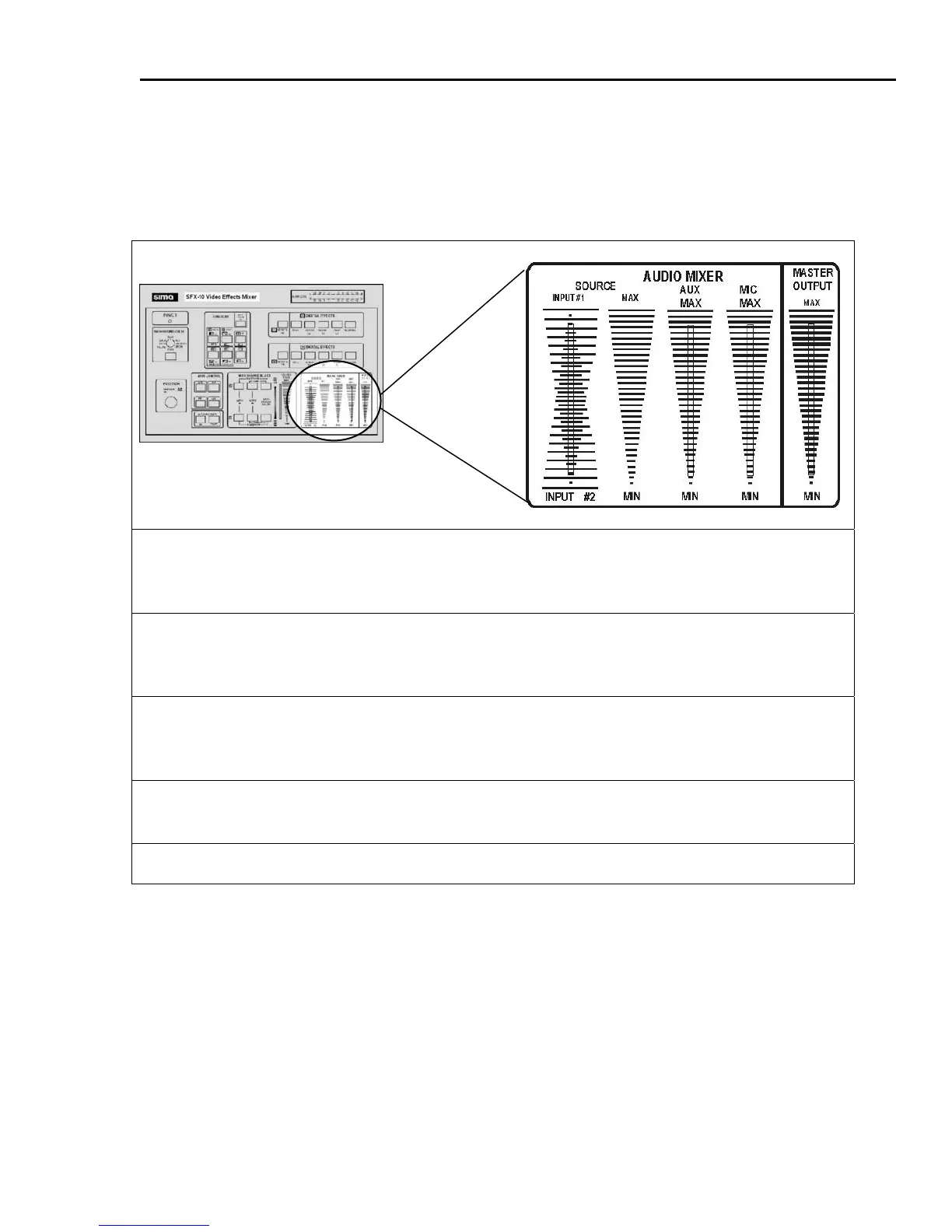 SOURCE MAX / MIN – This slide controls the audio level of the source selected with the