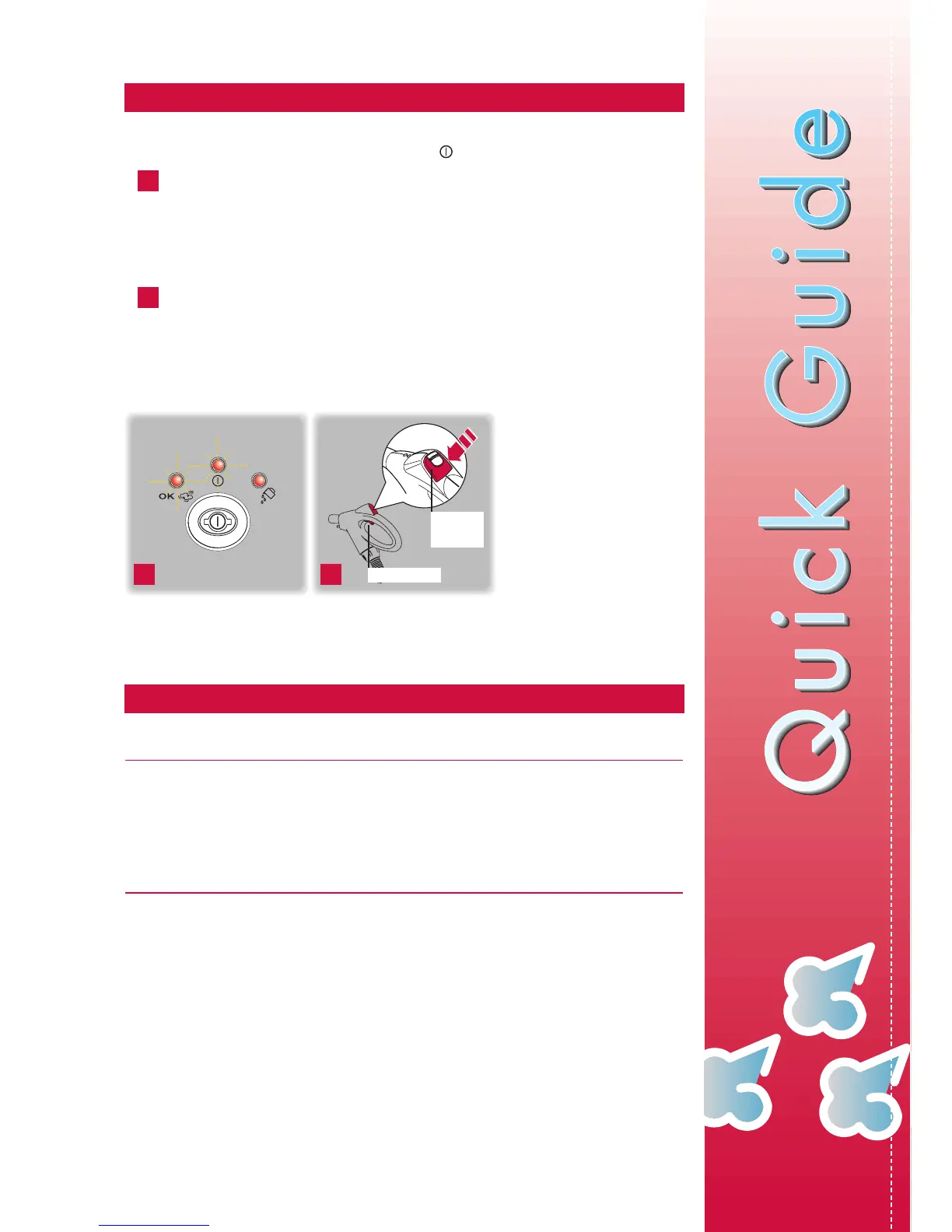 Het controlelampje van de voeding brandt. Wanneer ook het controlelampje OK stoom