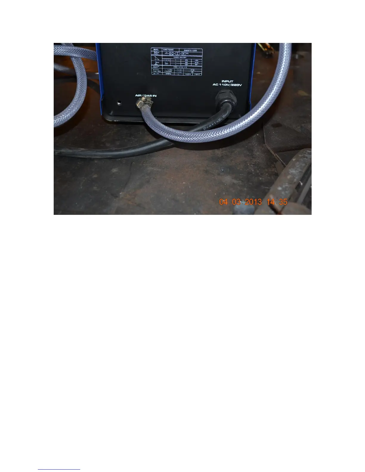 Air and Argon Connection to Regulator/Filter
