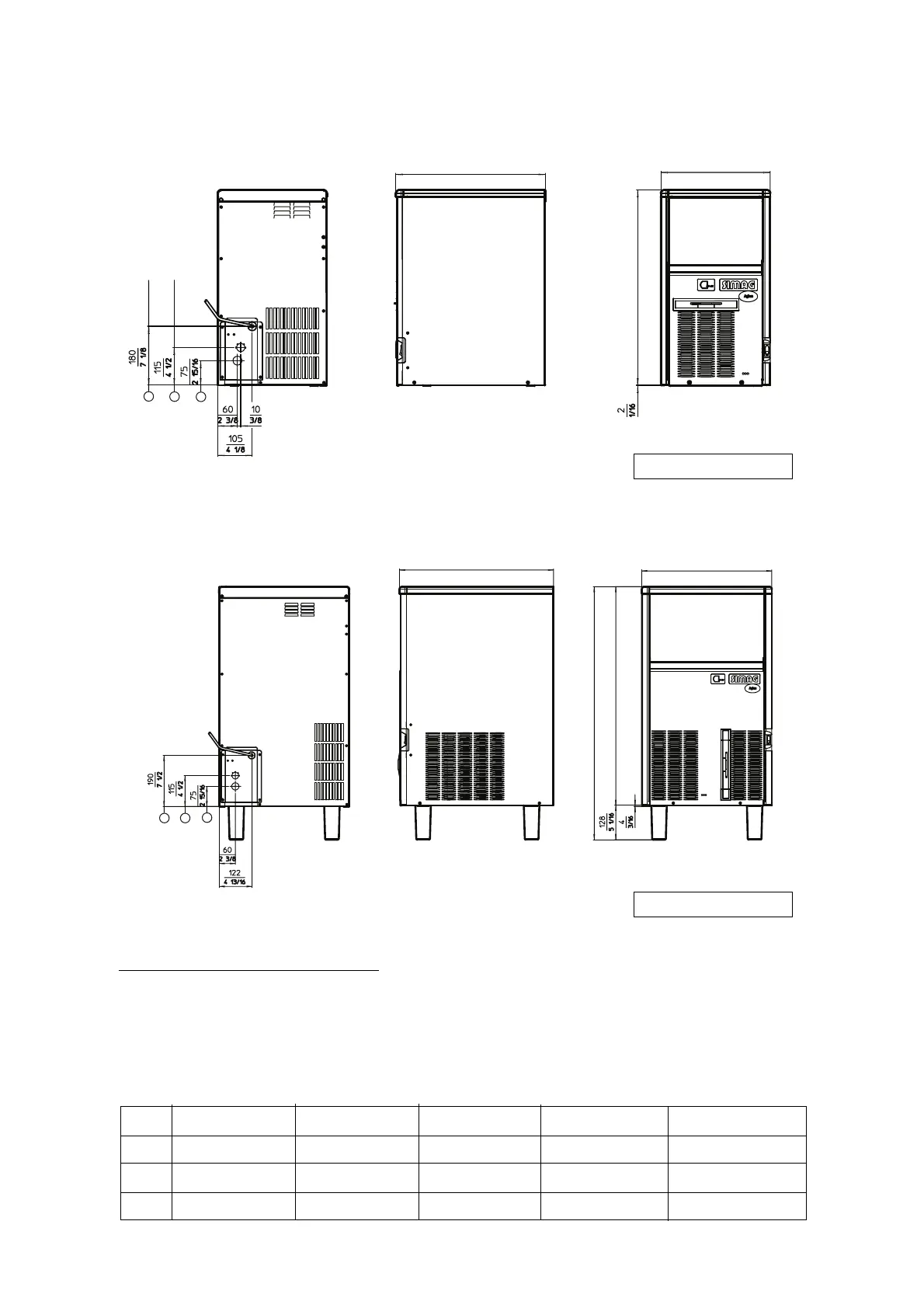 SIMAG SDN25 - Machine Dimensions and Technical Drawings; Dimensions for SDN 25-30 and SDN 35-45-65 Models