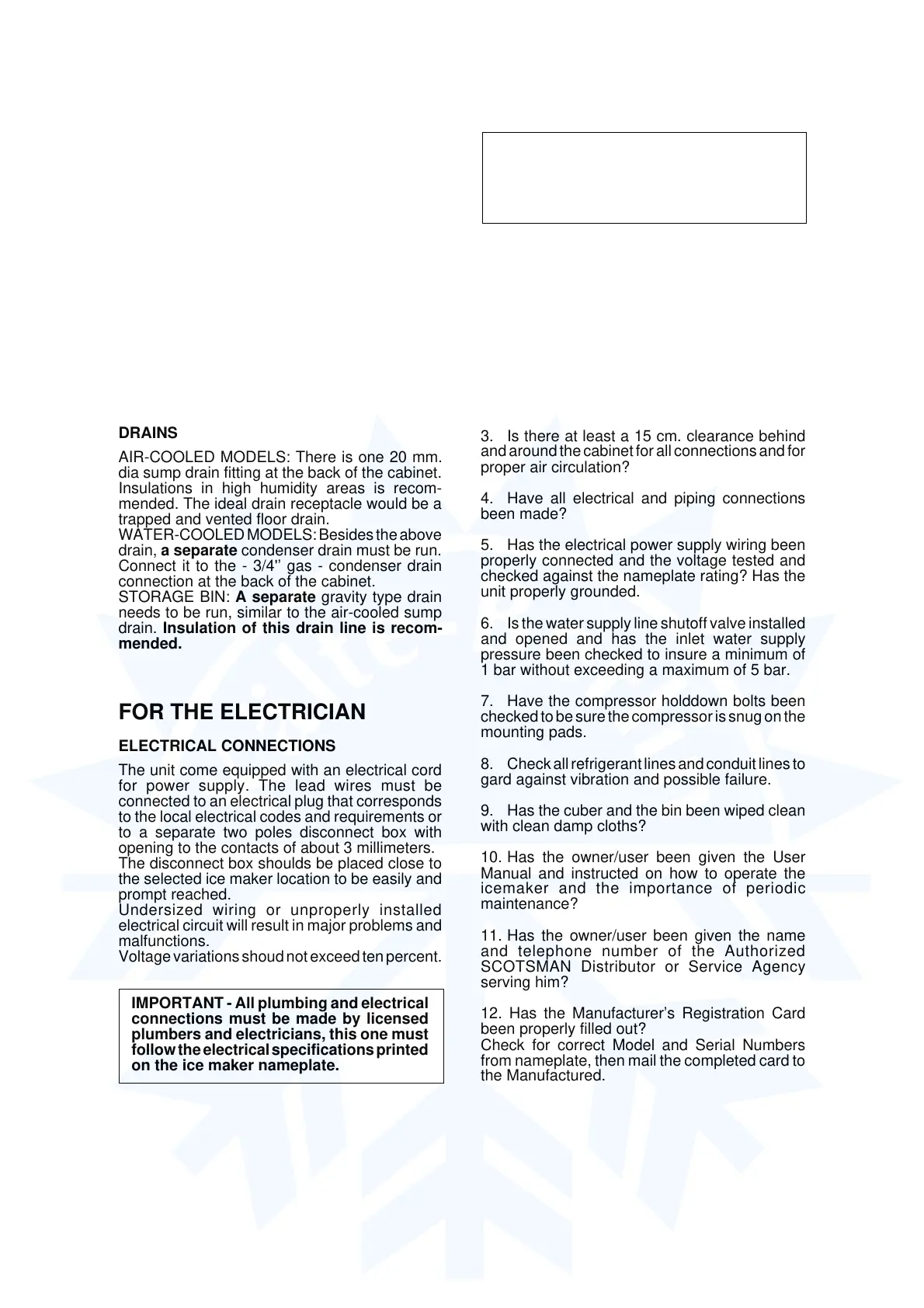 IMPORTANT - All plumbing and electrical