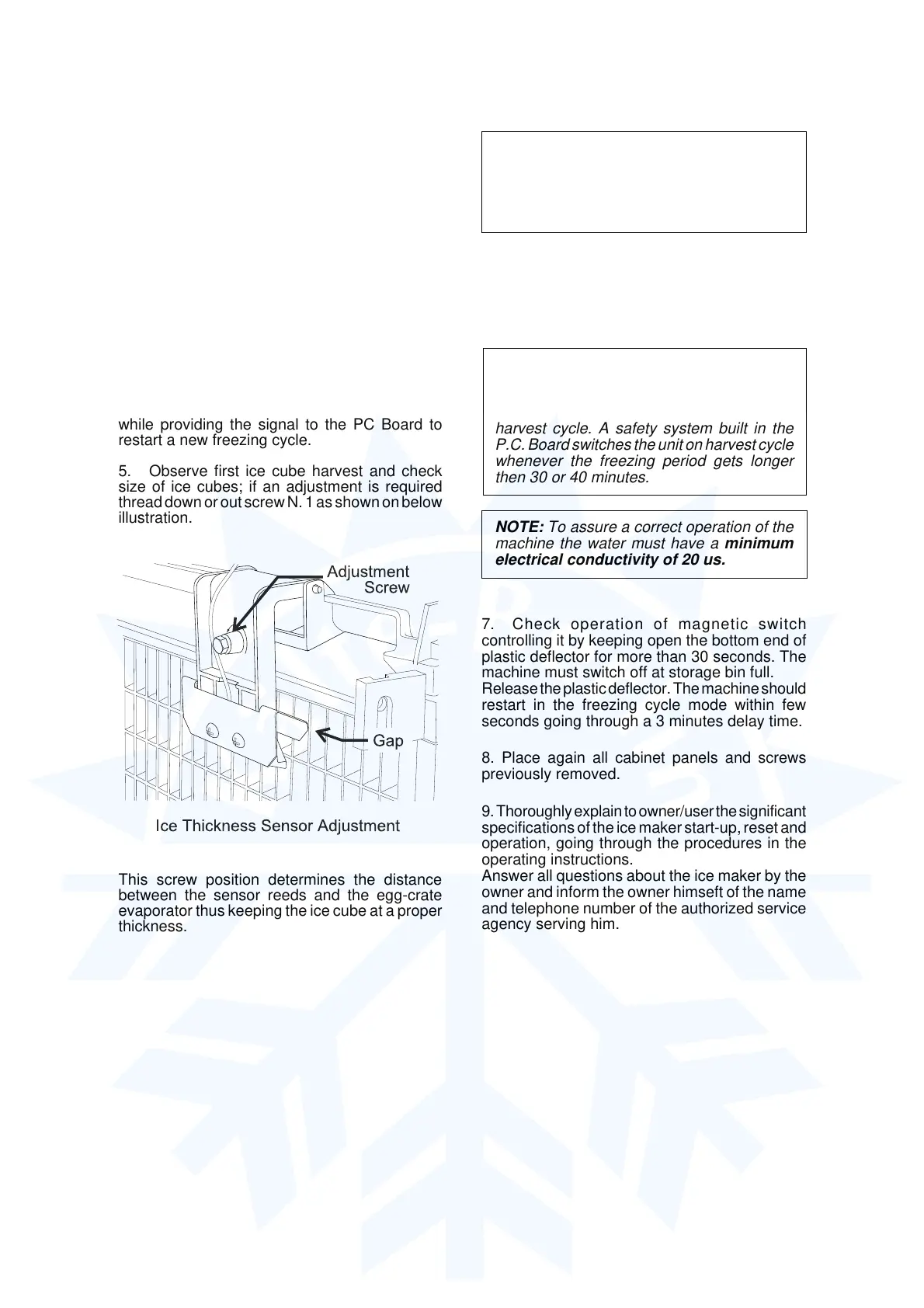 size of ice cubes; if an adjustment is required