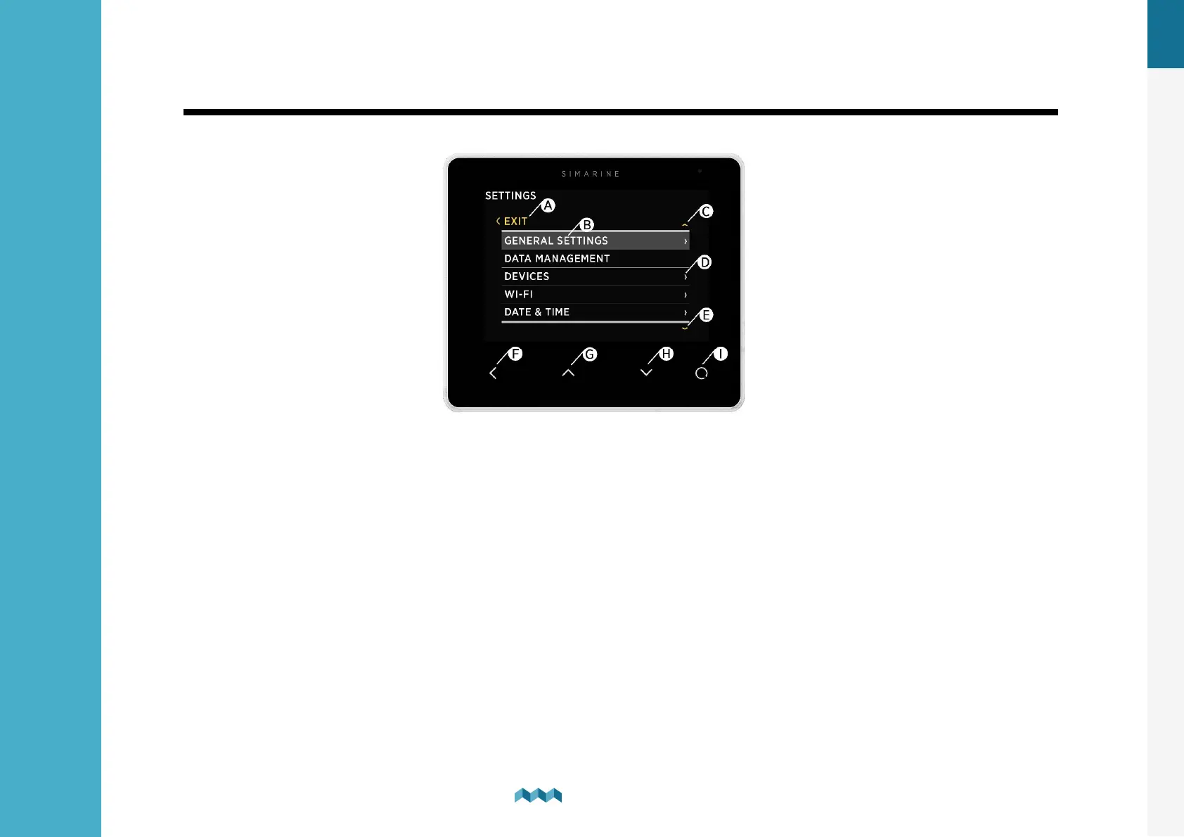 F- BACK BUTTON, is used to navigate one level back ore leave the settings menu.