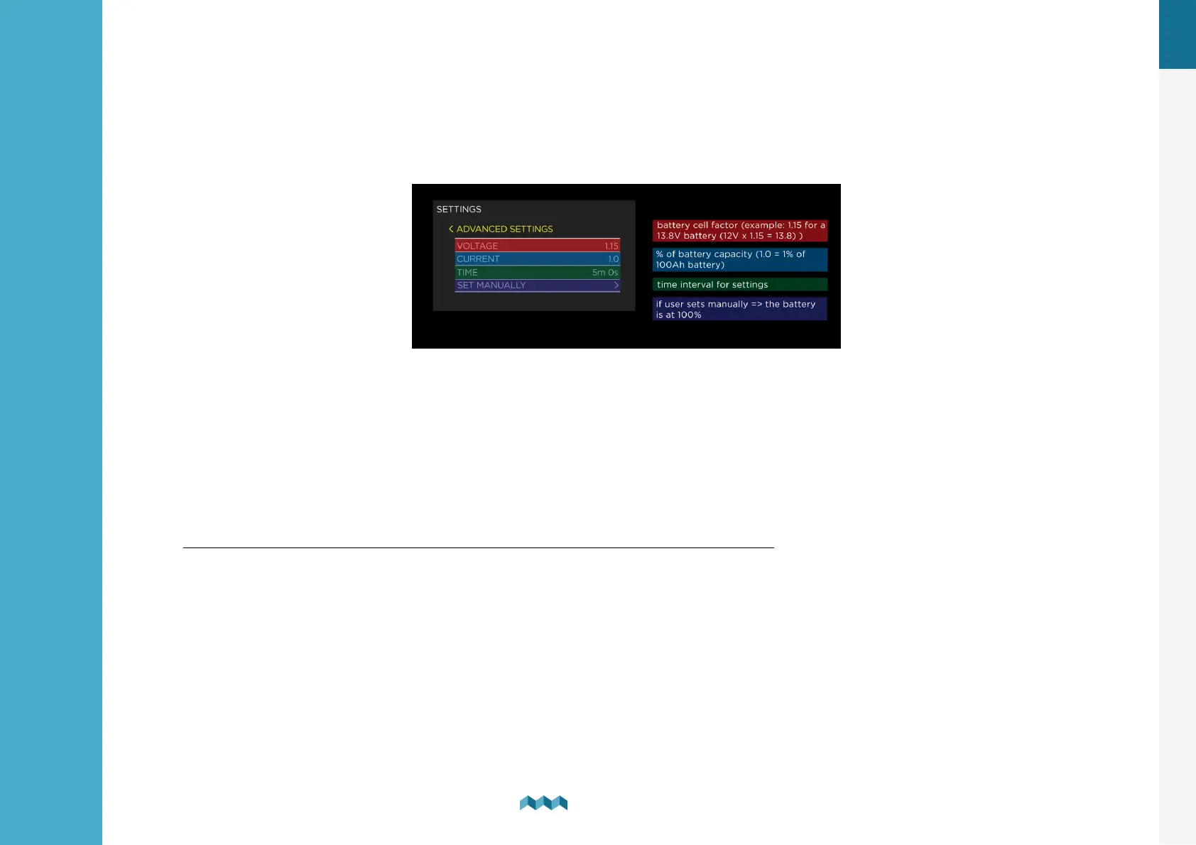 - If you have a 13,8V 100Ah battery, then you can use the settings from the picture above.