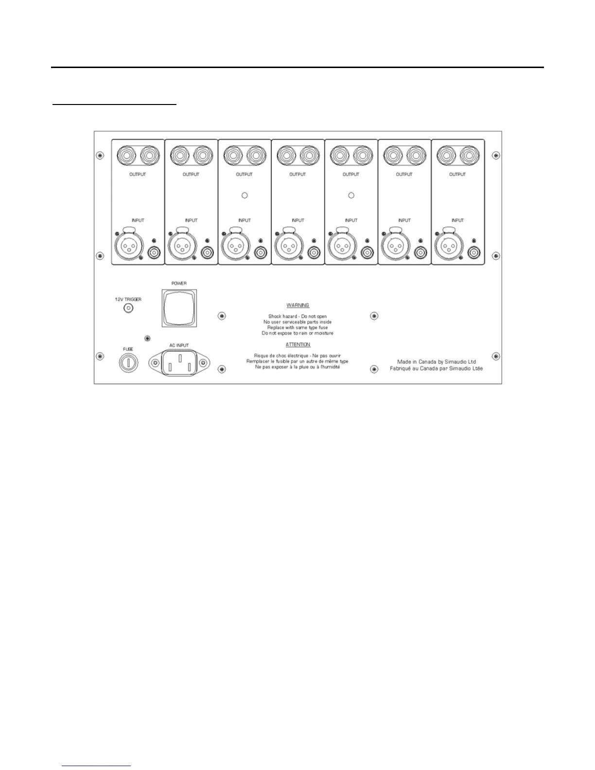 connectors and output connectors are located on the back panel. If your amplifier has, for example, five channels, then the