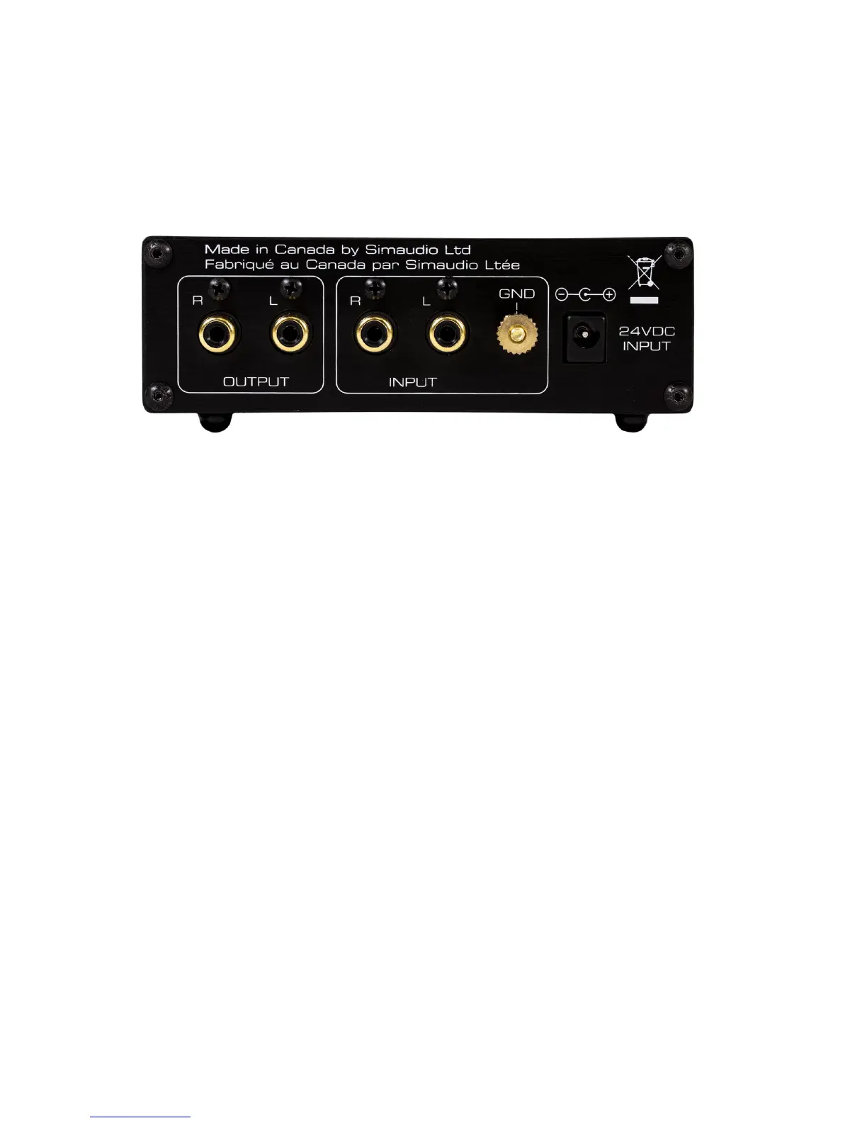 3. Connect the left and right output connectors of the MOON 110LP v2 to the preamplifier/integrated