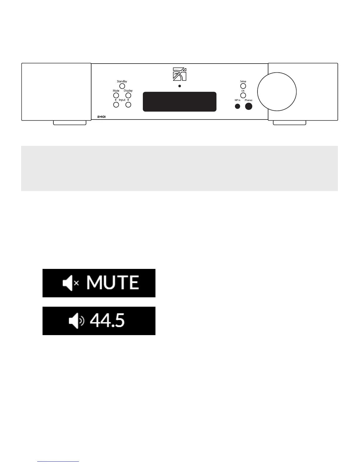 The “Mute” button mutes the output signal to all outputs.