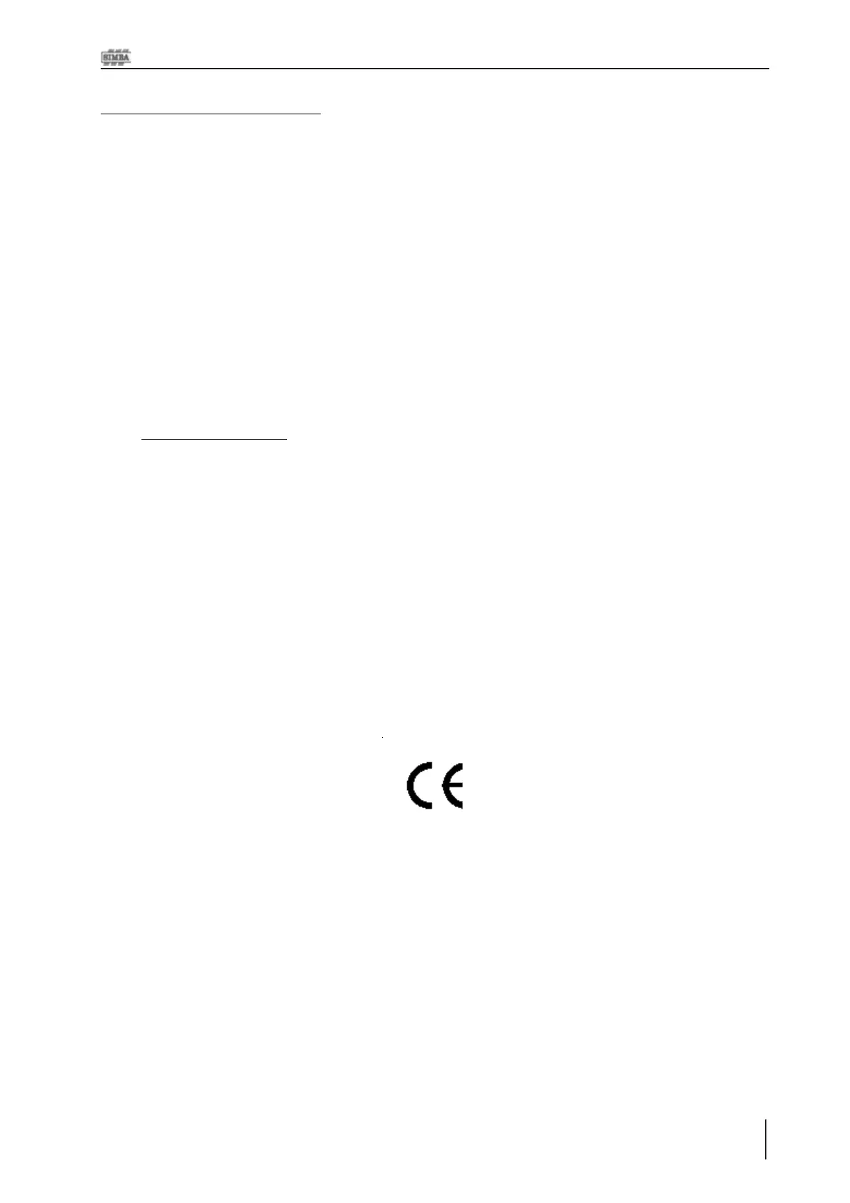 Simba International Limited hereby declare that the Product described in this Operators Manual, and defined