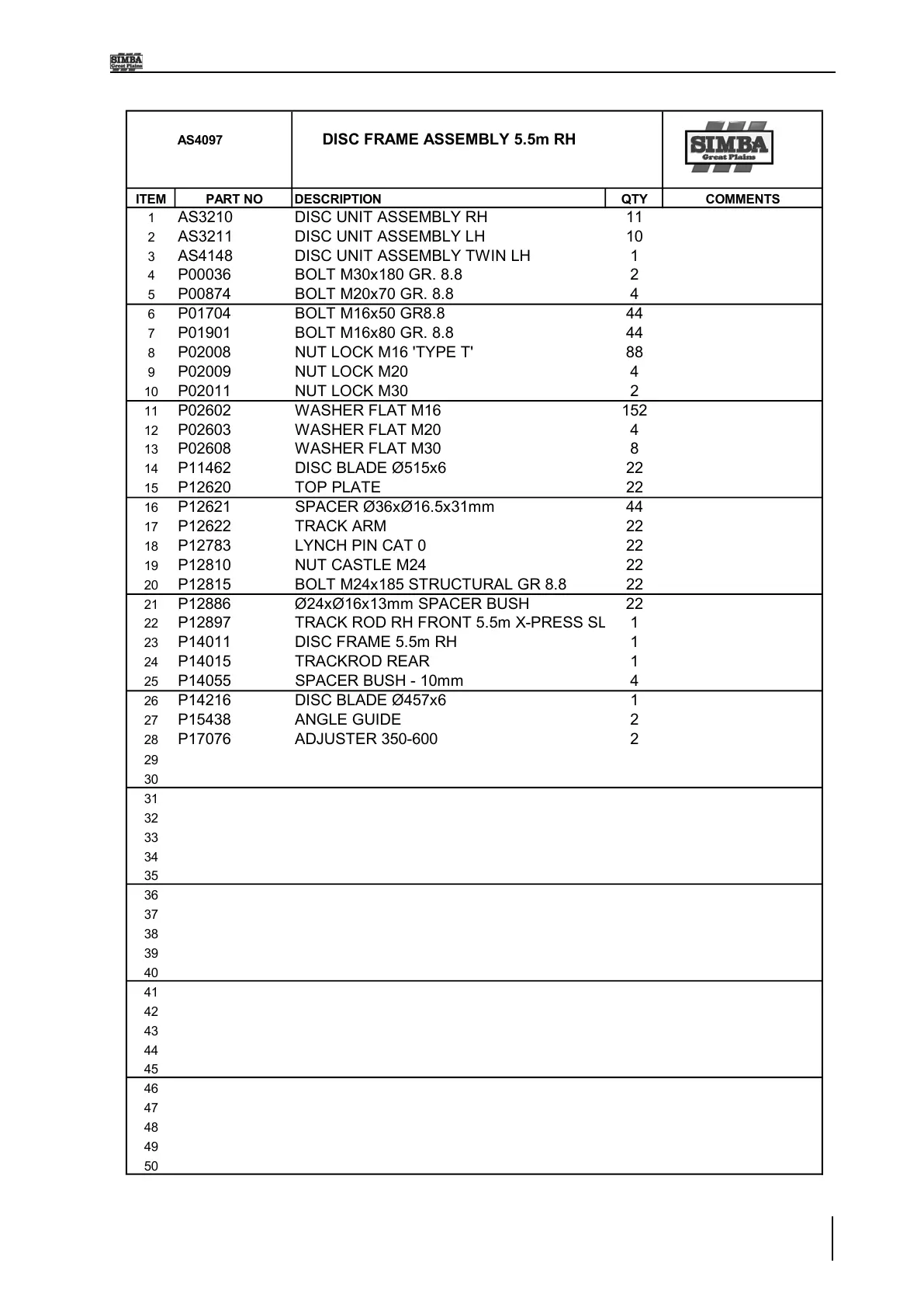 ITEM PART NO DESCRIPTION QTY COMMENTS