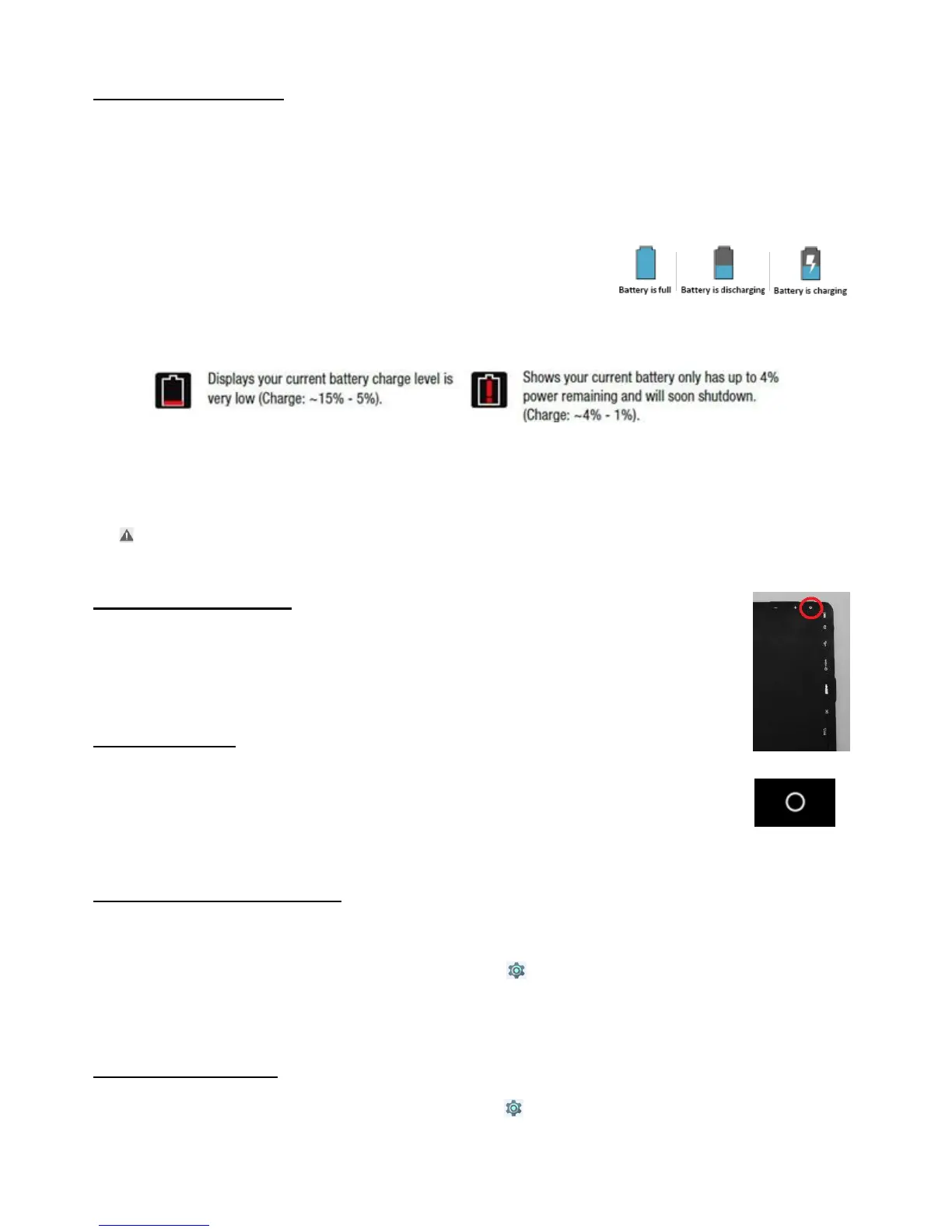 The Tablet comes with a built-in rechargeable lithium-polymer battery. It is recommended to fully charge