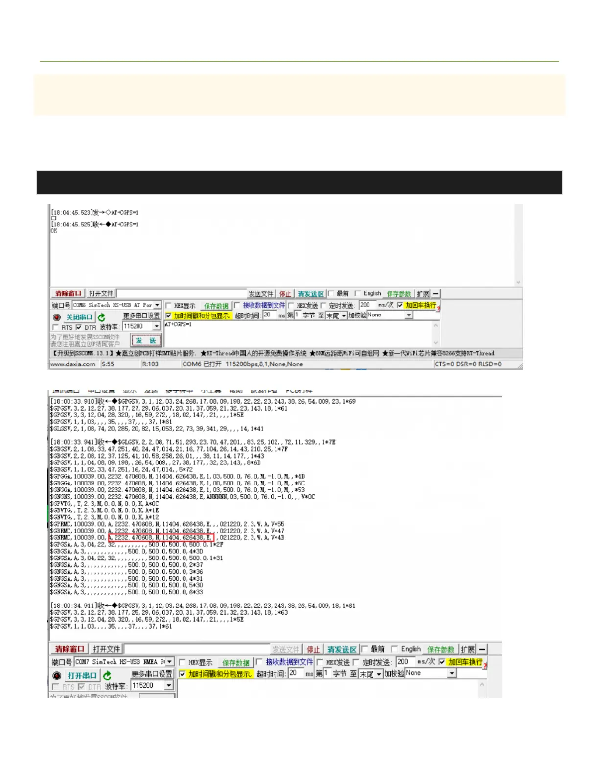 outdoors facing the sky. Then send the AT command to turn on the GPS: