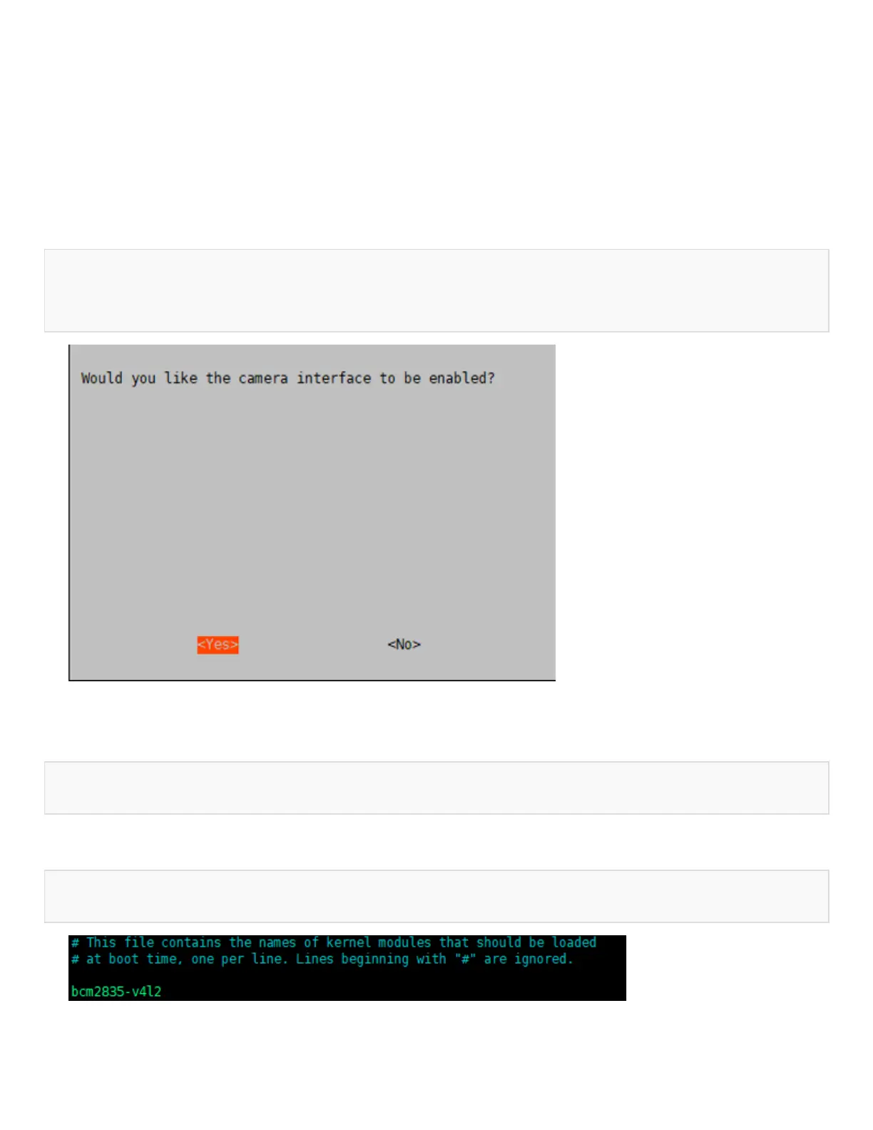 • The camera must be enabled by running the raspi-config command before using