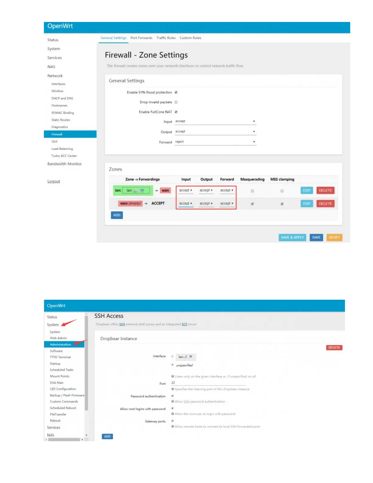 accessed by ssh), check the Gateway port, and click "Save & Apply"