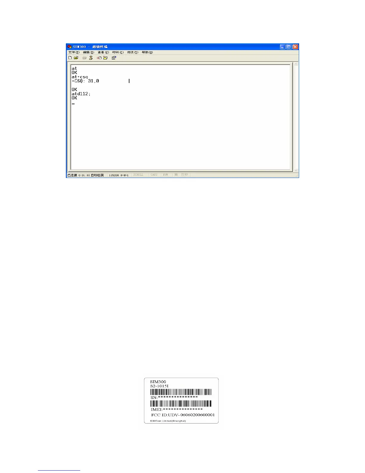 SIM300 FCC label is shown as: