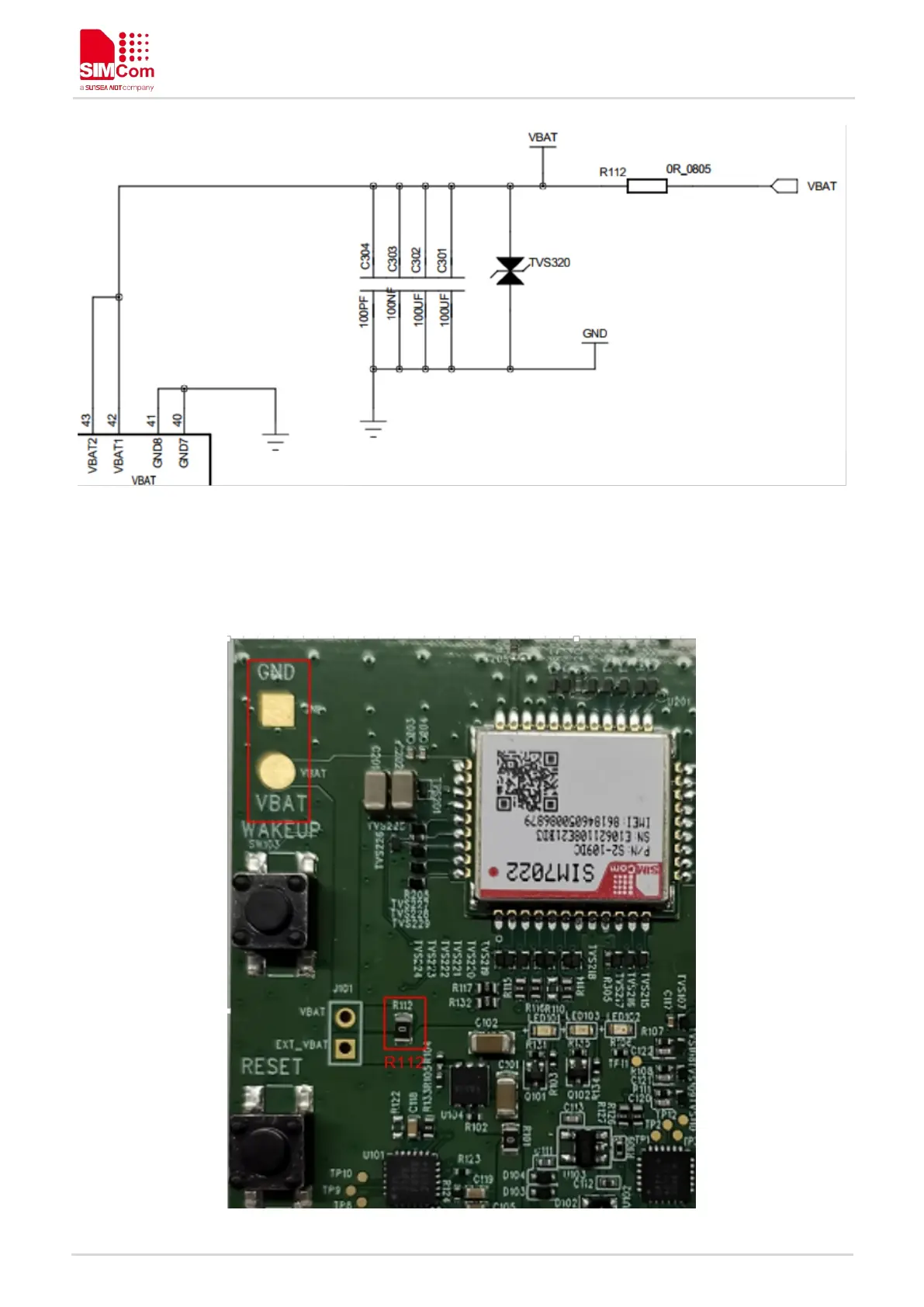 powered separately, the resistance of R112 should be removed first, and then the VBAT and GND test