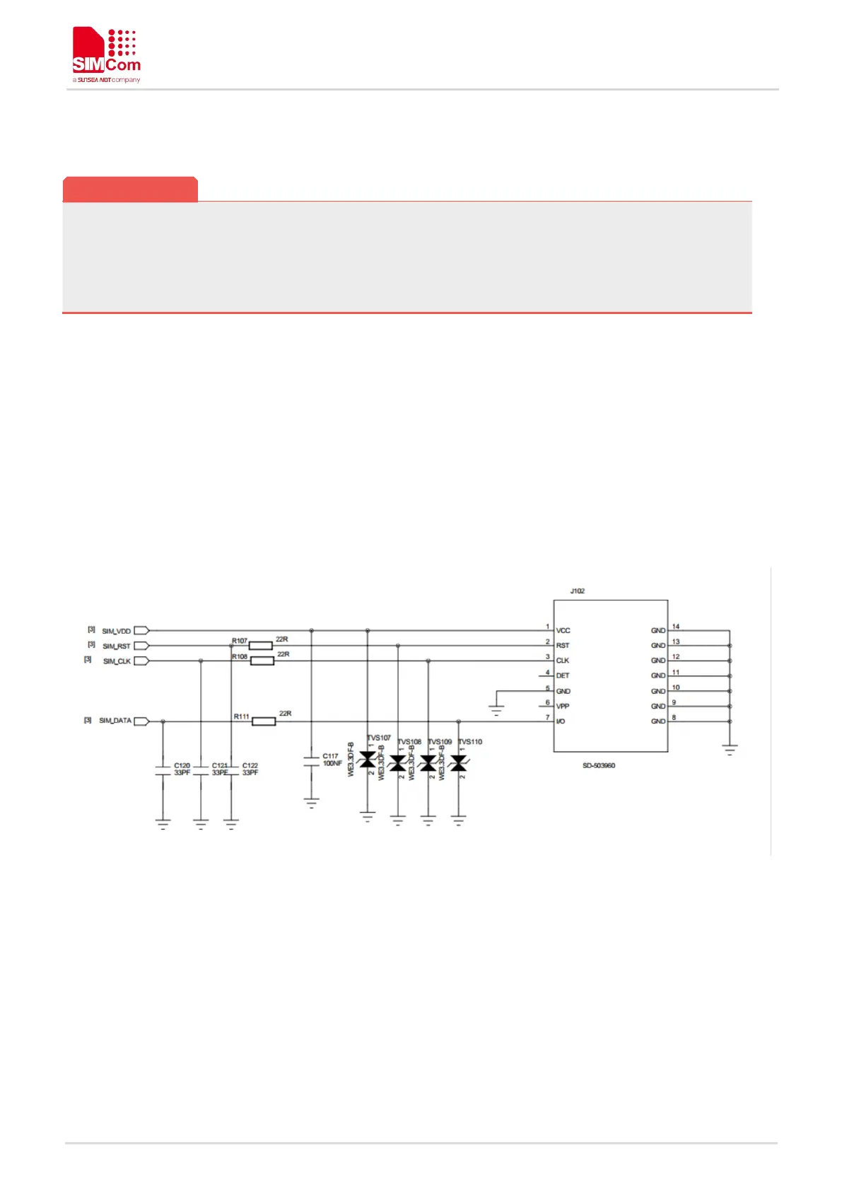 The reference circuit of the (U)SIM card interface is shown in the figure below.