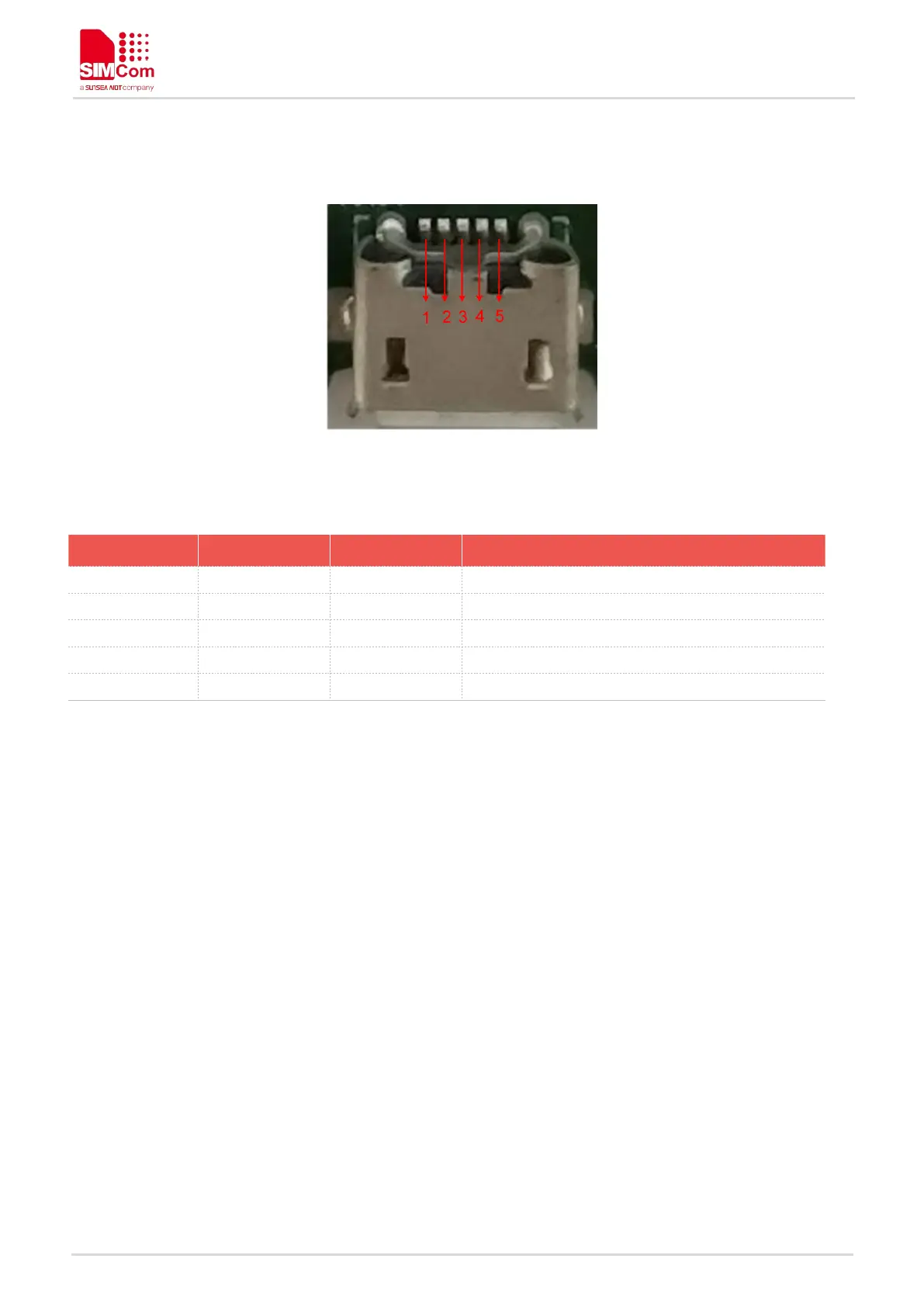 Table 7: micro USB interface pin definition (J103)