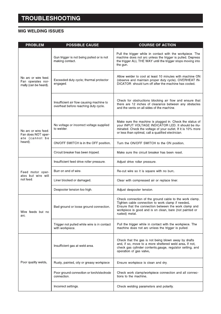 Simder SD-4050 MINI - Troubleshooting; MIG Welding Issues