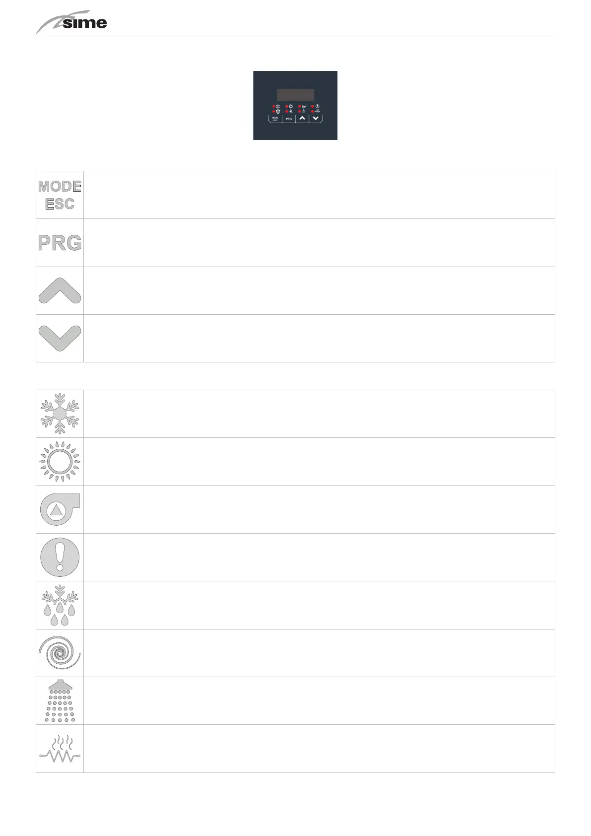 Defrosng Led: ashes to enter defrosng mode, it is on when defrosng is in progress.