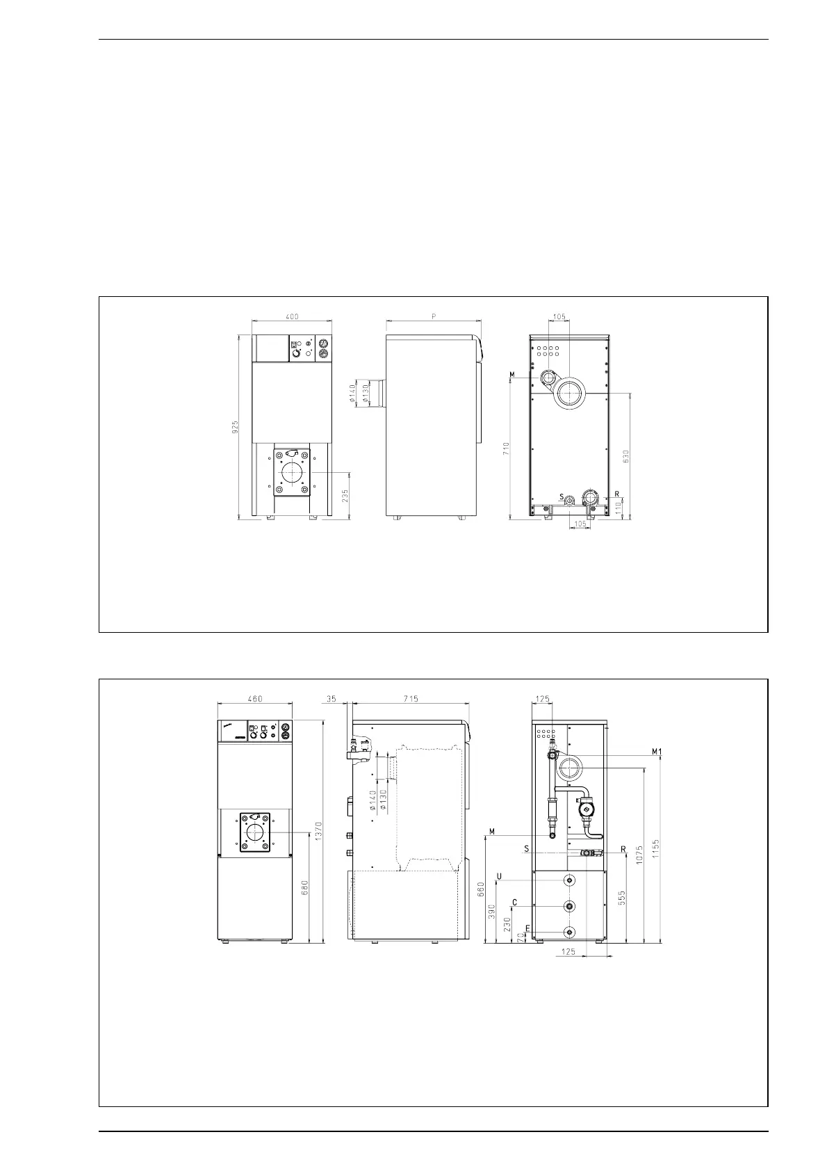 Sime AR Series - Combustion Chamber Dimensions; Installation; Boiler Room; Boiler Room Dimensions