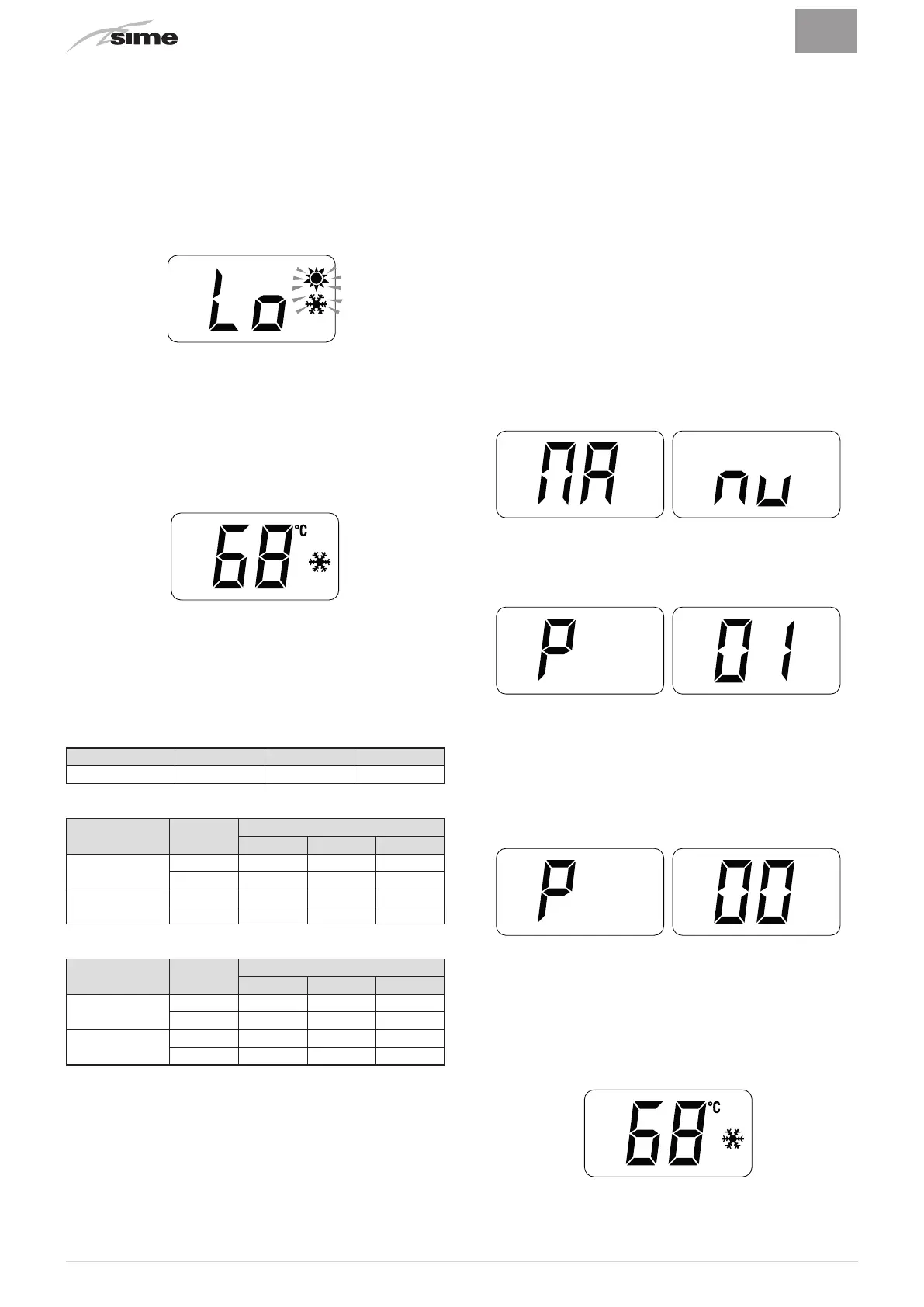 indiquées dans les tableaux reportés ci-dessous. Sur l'afficheur