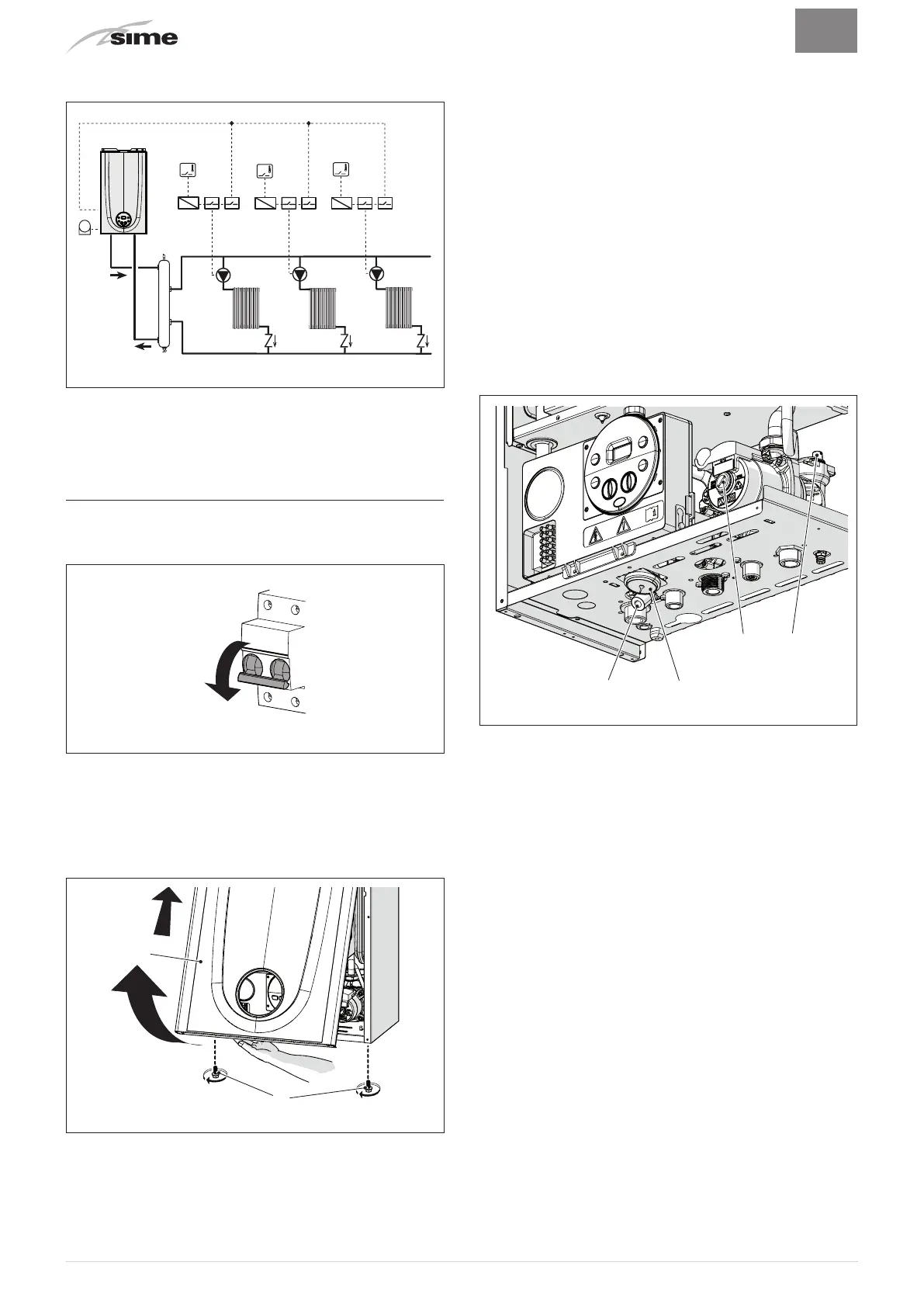 Refit the front panel of the boiler hooking it on at the top,