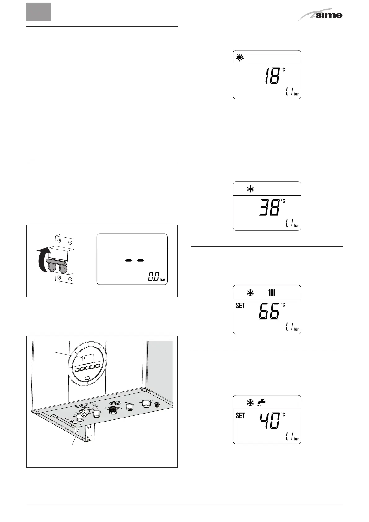– vérifiez sur l'afficheur (1) si la pression de l'installation de chauf-