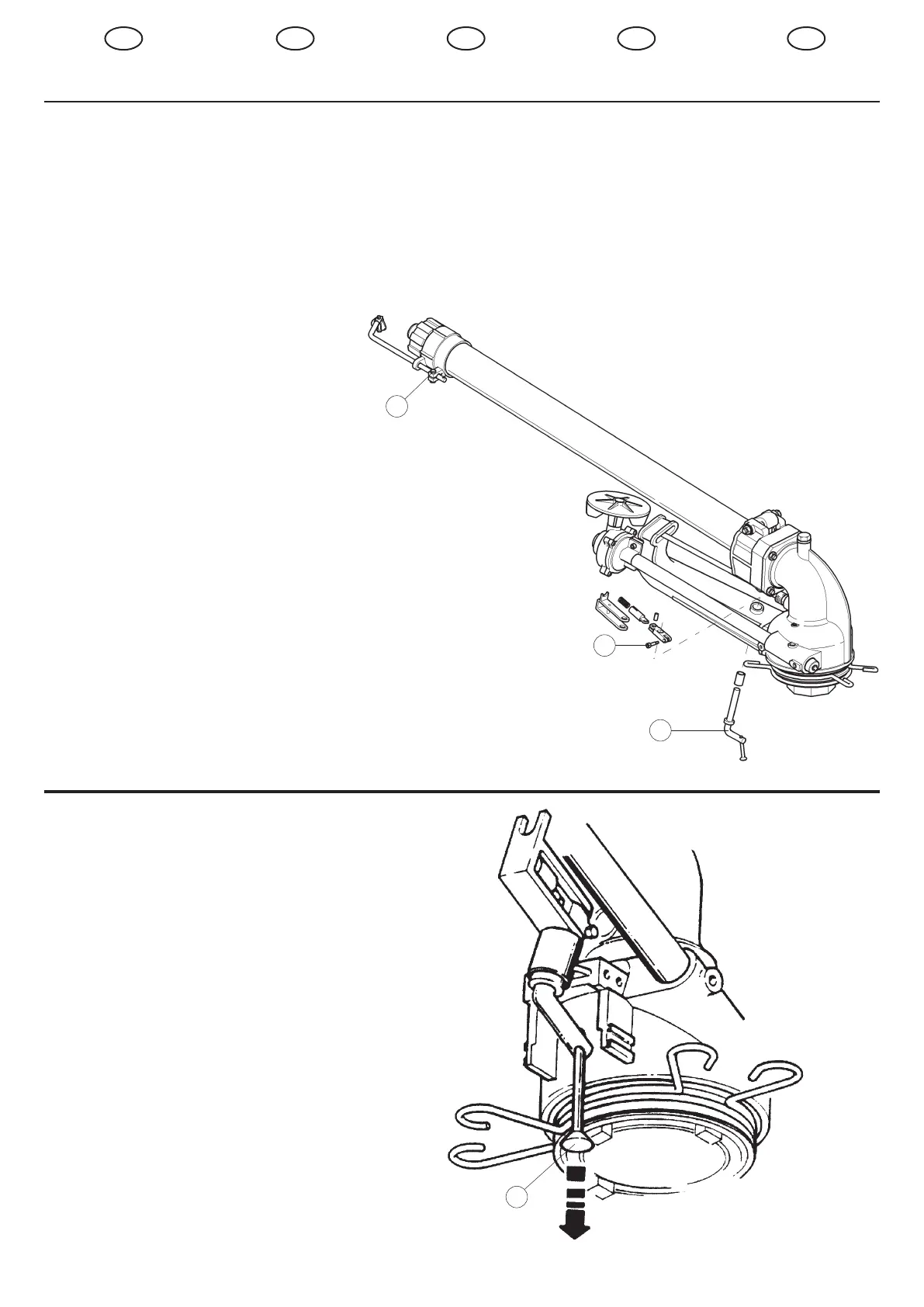 Loosenscrew(1)andremovepin(2).Unscrewscrew(3)andremovestream-breaker.