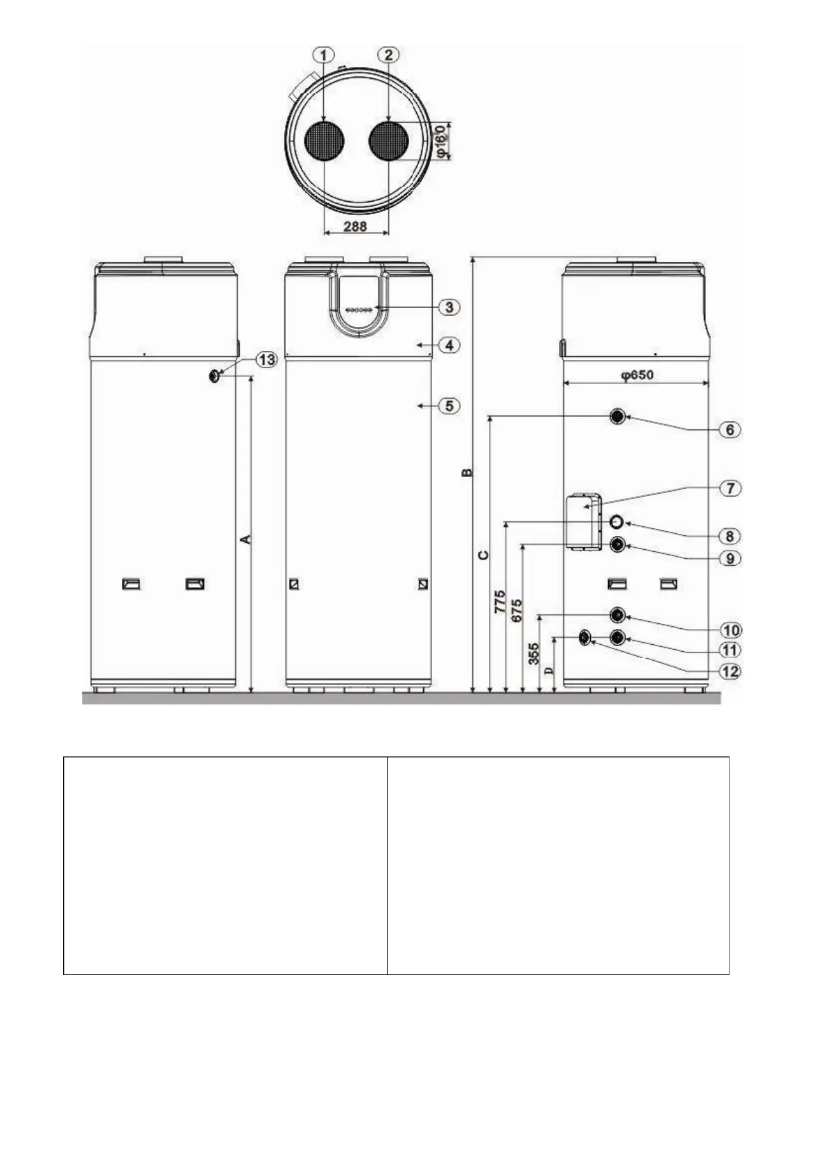 2.Air outlet –φ160mm