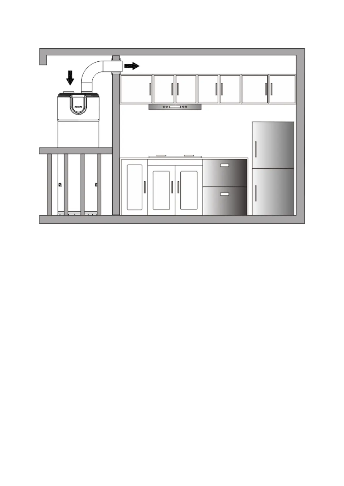 Inlet air from outdoor without duct, outlet air ducted to room. Air outlet duct length≤6m.