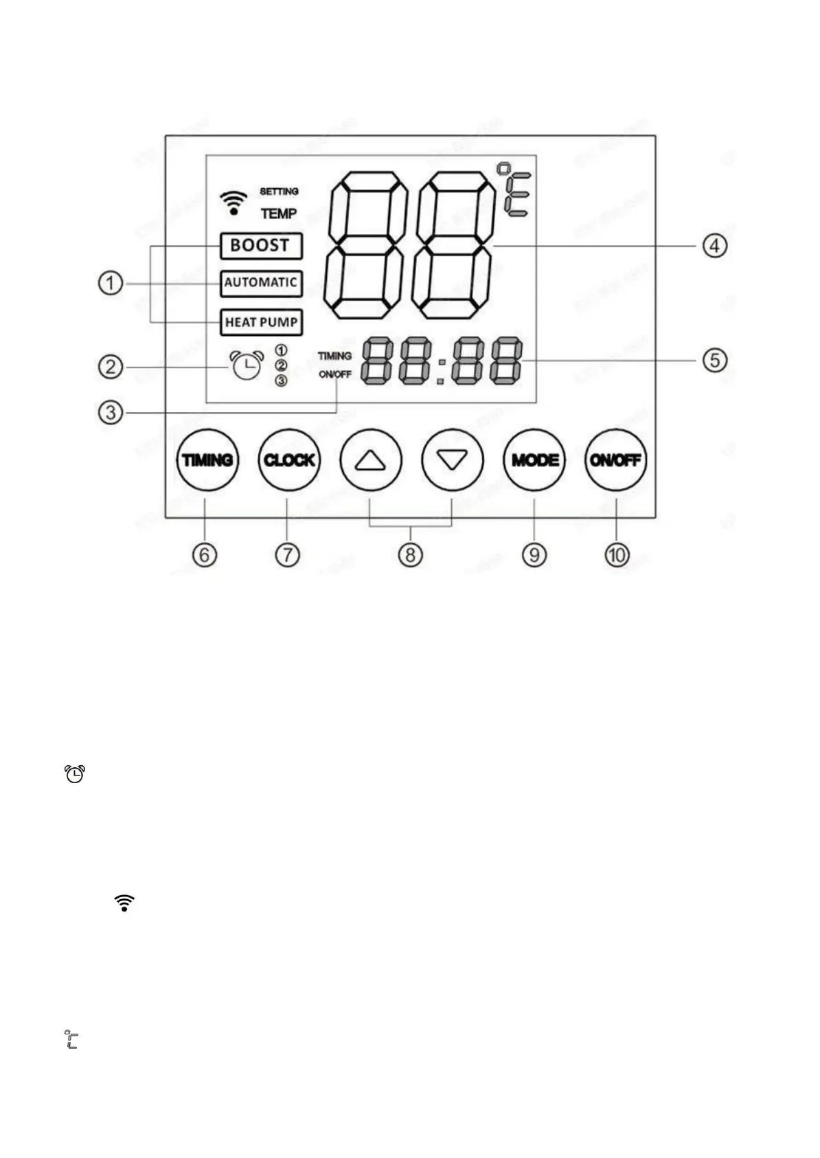 BOOST– light up means product is under boost mode (heat pump and electric heater heating together).