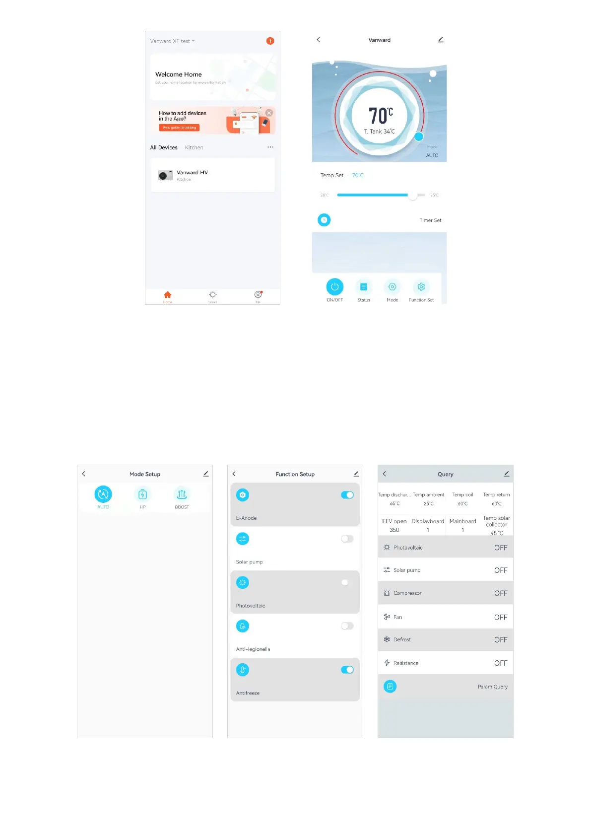 Le funzioni comprendono E-Anode, Pompa solare, Fotovoltaico, Antilegionella, Antigelo. Premere un