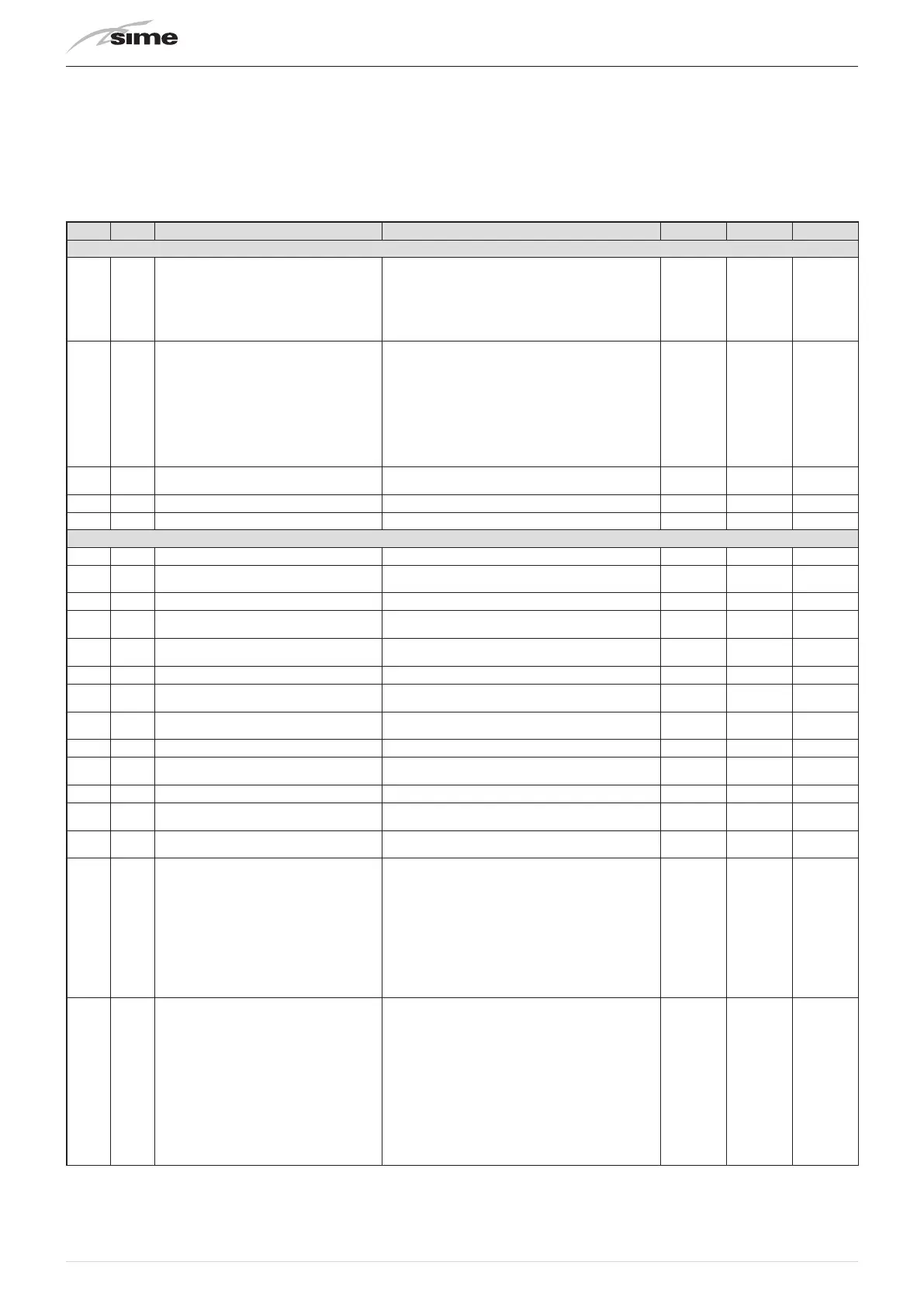 Type No. Description Range U/M Step Default